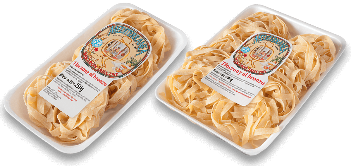 Pyszny, makaron pszenny, jajeczny w postaci szerokich wstążek papardelle.
