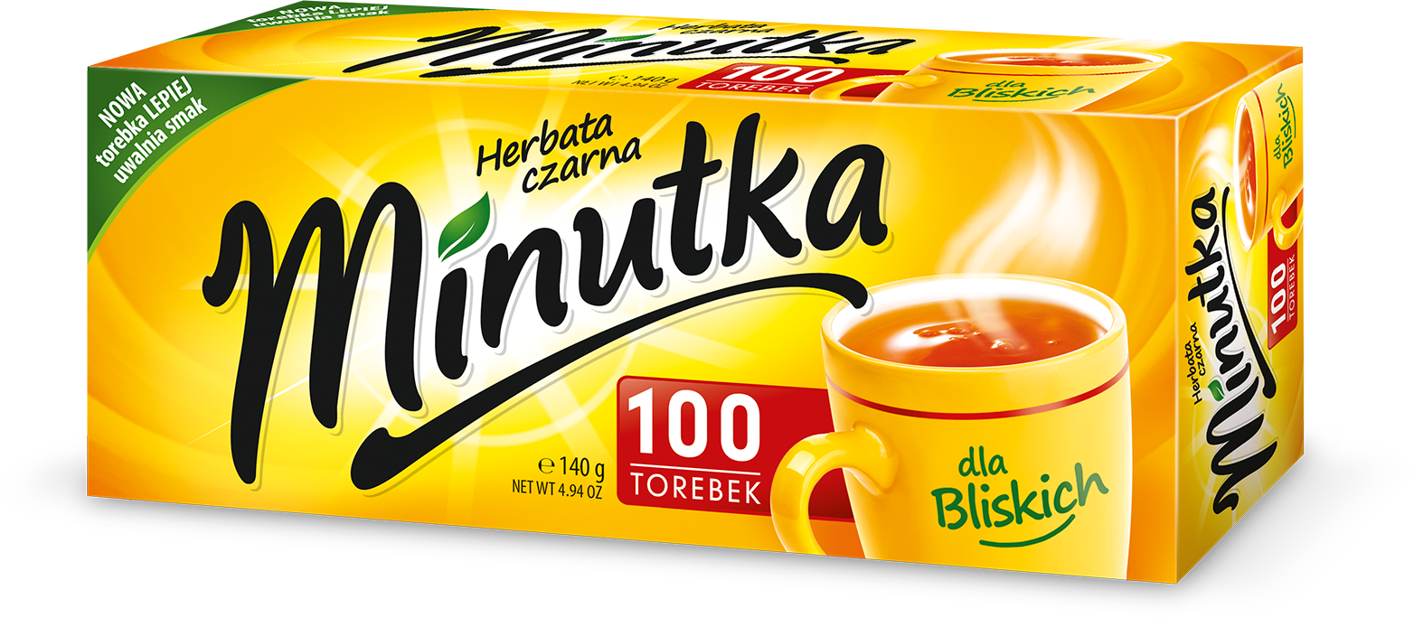 Okrągła torebka herbaty ekspresowej Minutka kryje w sobie unikalną mieszankę herbat czarnych, doskonałą do zaparzania o każdej porze dnia. Pozwala uzyskać bursztynowy napar harmonijnie zbalansowany nutą goryczki. Minutka już od lat doceniana jest przez polskie rodziny, jako idealna, klasyczna herbata na co dzień. Dzięki znakomitej recepturze napar ma zawsze świeży, niepowtarzalny smak, którym możesz bez końca dzielić się z Bliskimi. Wysoka jakość herbaty o niezmiennie dobrym smaku przyniosła Minutce wiele nagród, przyznanych zarówno przez branżę handlową, jak i przez jej wiernych amatorów. Jesteśmy dumni, że Minutka w opakowaniu zawierającym 100 okrągłych herbacianych torebek to obecnie lider rynku wśród czarnych herbat ekspresowych!.
