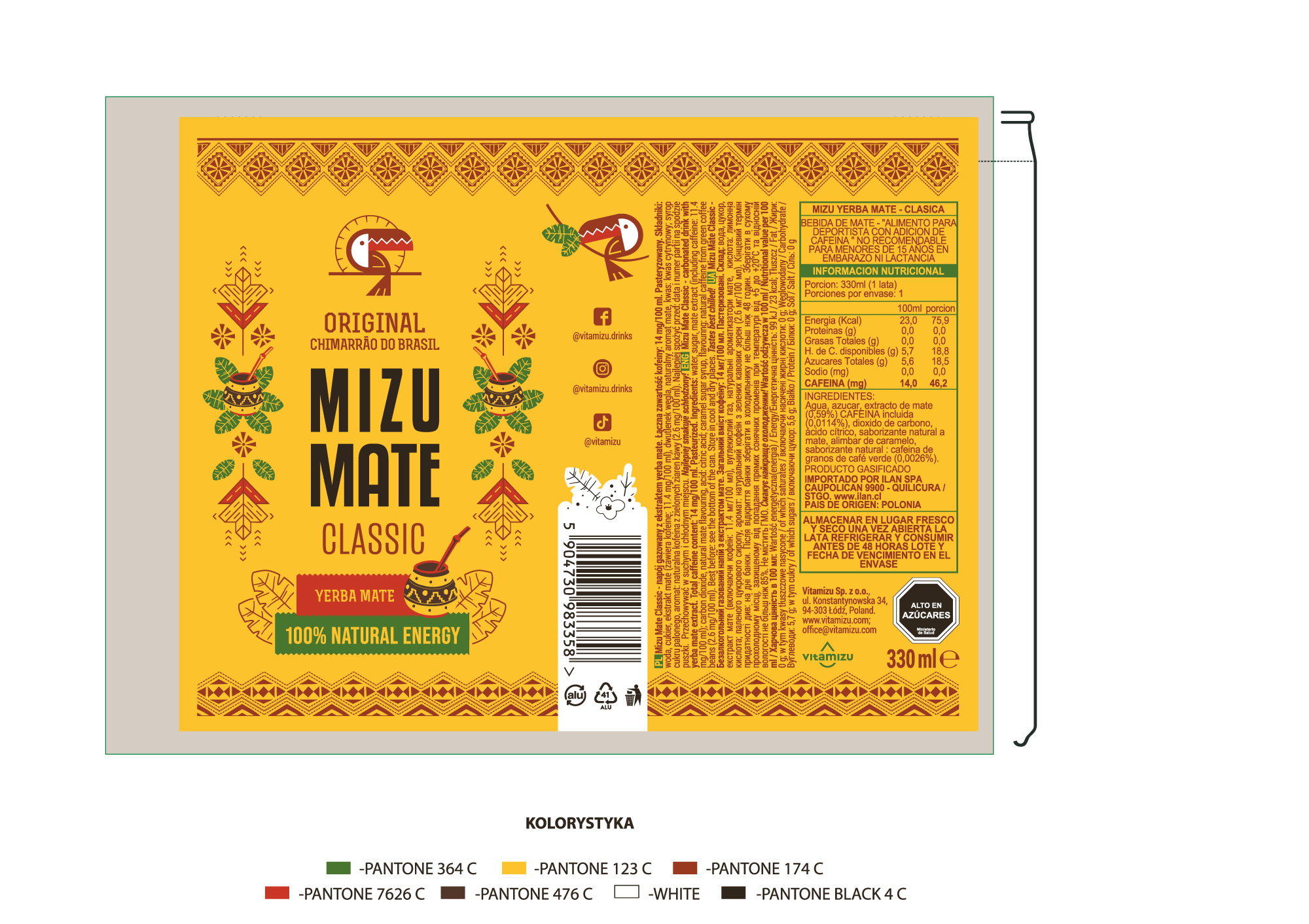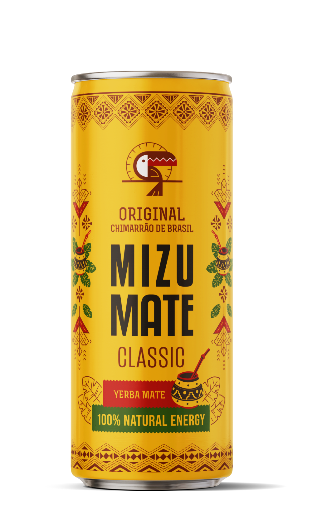 Skosztuj słynnego chimarrão, naparu przyrządzonego z ostrokrzewu paragwajskiego i poczuj klimat przyjacielskiej relacji i tradycji, którą w Mizu Mate łączymy z nowoczesnością w złotej puszce z tukanem. Yerba mate doda Ci energii, pobudzi i zmotywuje do działania, a także oczyści Cię i wzmocni, żebyś był gotowy na każde wyzwanie, które zechcesz podjąć! Poczuj smak orzeźwienia, utrzymującej się goryczki oraz bliski naturze smak pylastej brazylijskiej erva mate.