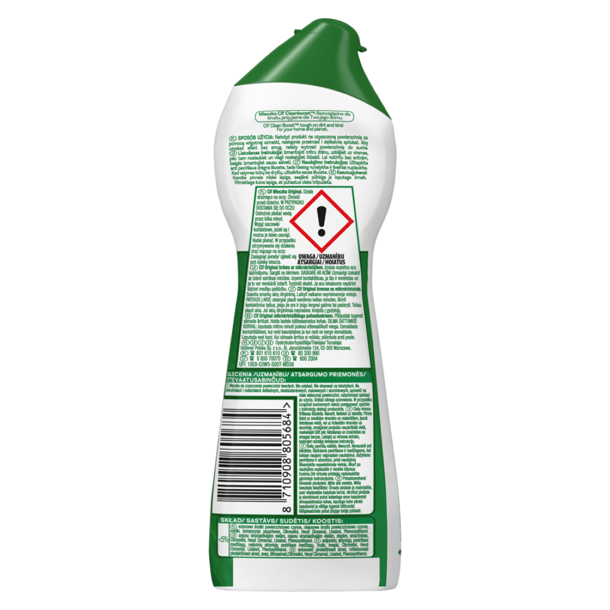 Poznaj najlepszą formułę mleczka Cif. Mleczko Cif z mikro-kryształkami nie uznaje żadnych kompromisów. Jego formuła usuwa w 100%* domowe zabrudzenia, by oferować nawet 100%* idealnie czystych powierzchni. Dzięki wzbogaceniu mikro-kryształkami, mleczko Cif wnika w głąb plam, skutecznie je usuwać i gwarantować efekt perfekcyjnej, lśniącej czystości. Formuła doskonale radzi sobie nawet z najbardziej uporczywymi zabrudzeniami – przypalonym tłuszczem w Twojej kuchni i kamieniem w łazience. Nowa konsystencja Cif działa tak samo skutecznie, ale wymaga mniej spłukiwania, dlatego możesz cieszyć się idealną czystością łatwiej, niż kiedykolwiek. *w porównaniu do poprzedniej formuły mleczka Cif.