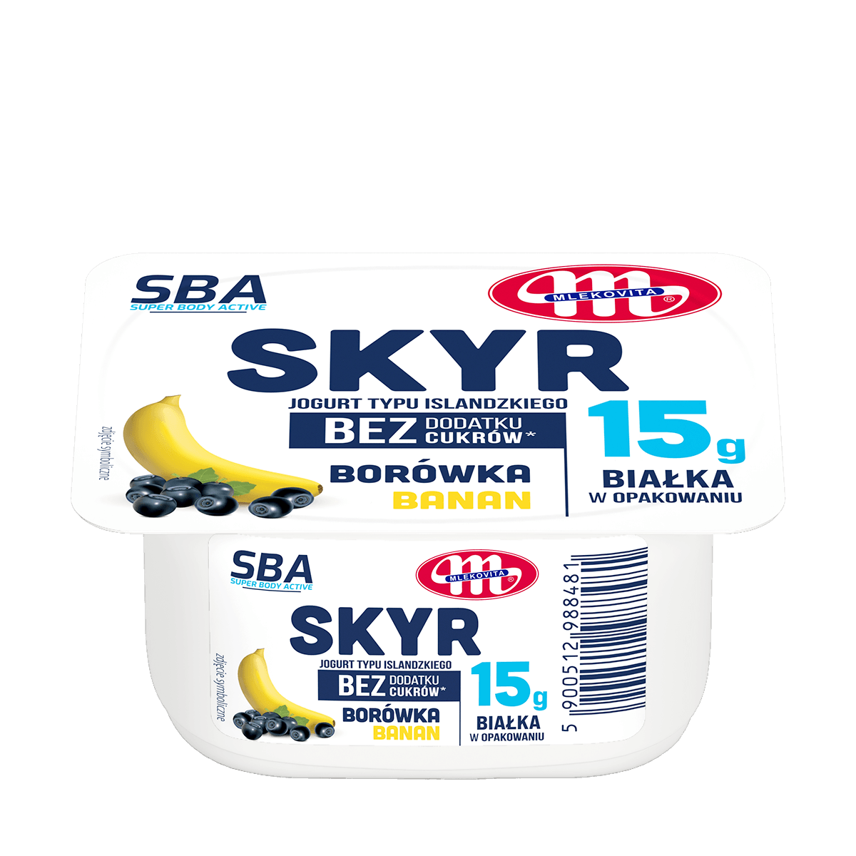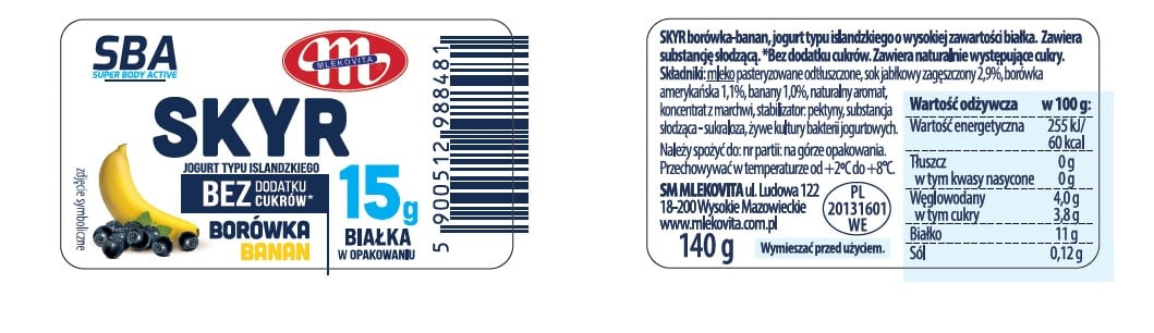 Super Body Active skyr to gęsty jogurt typu islandzkiego o kremowej konsystencji. Dostępny w wygodnym kubeczku w 3 wariantach smakowych: , truskawka - banan, borówka - banan oraz mango - banan.