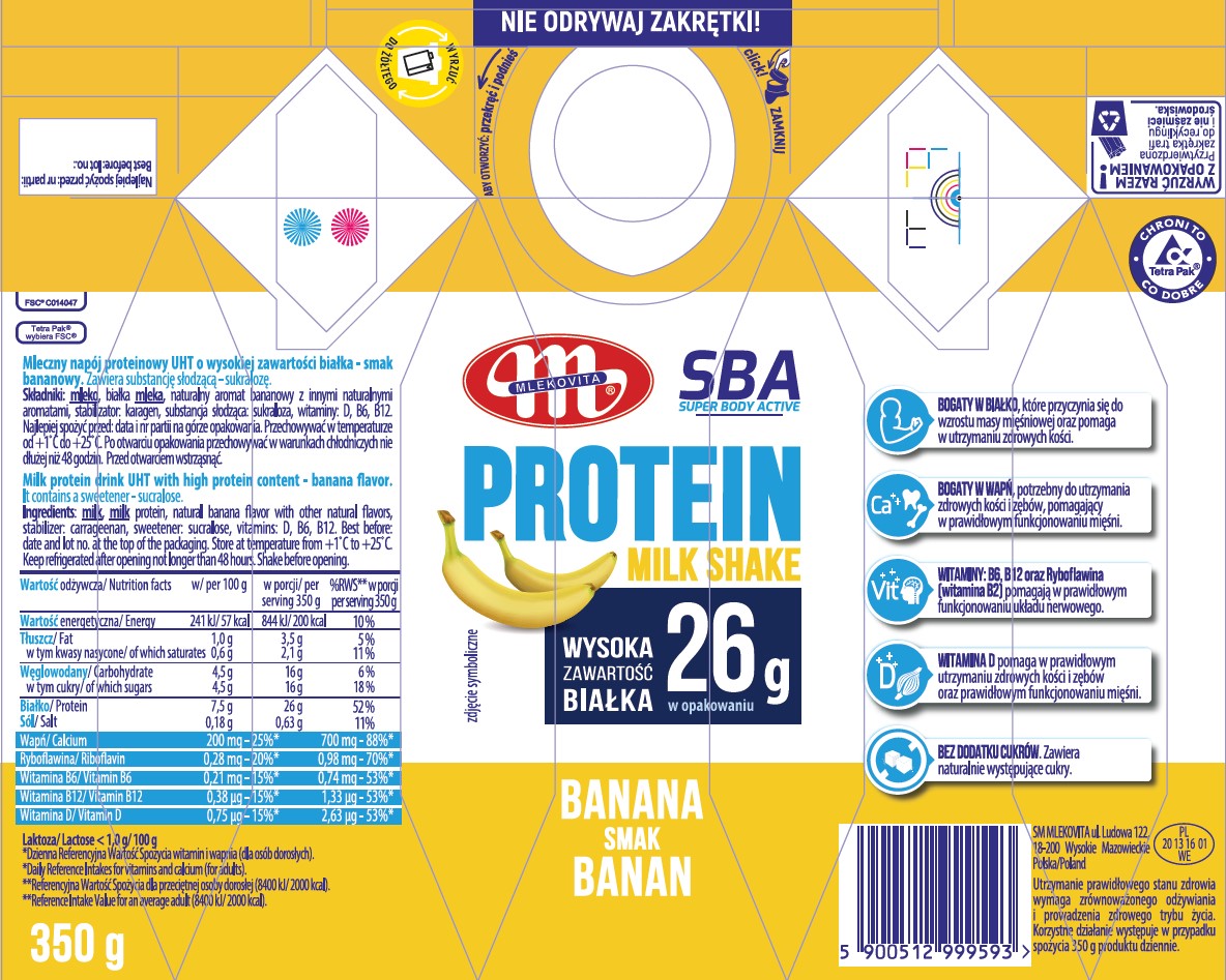 Mlekovita Mleczny napój proteinowy Super Body Active o smaku bananowym 350 g