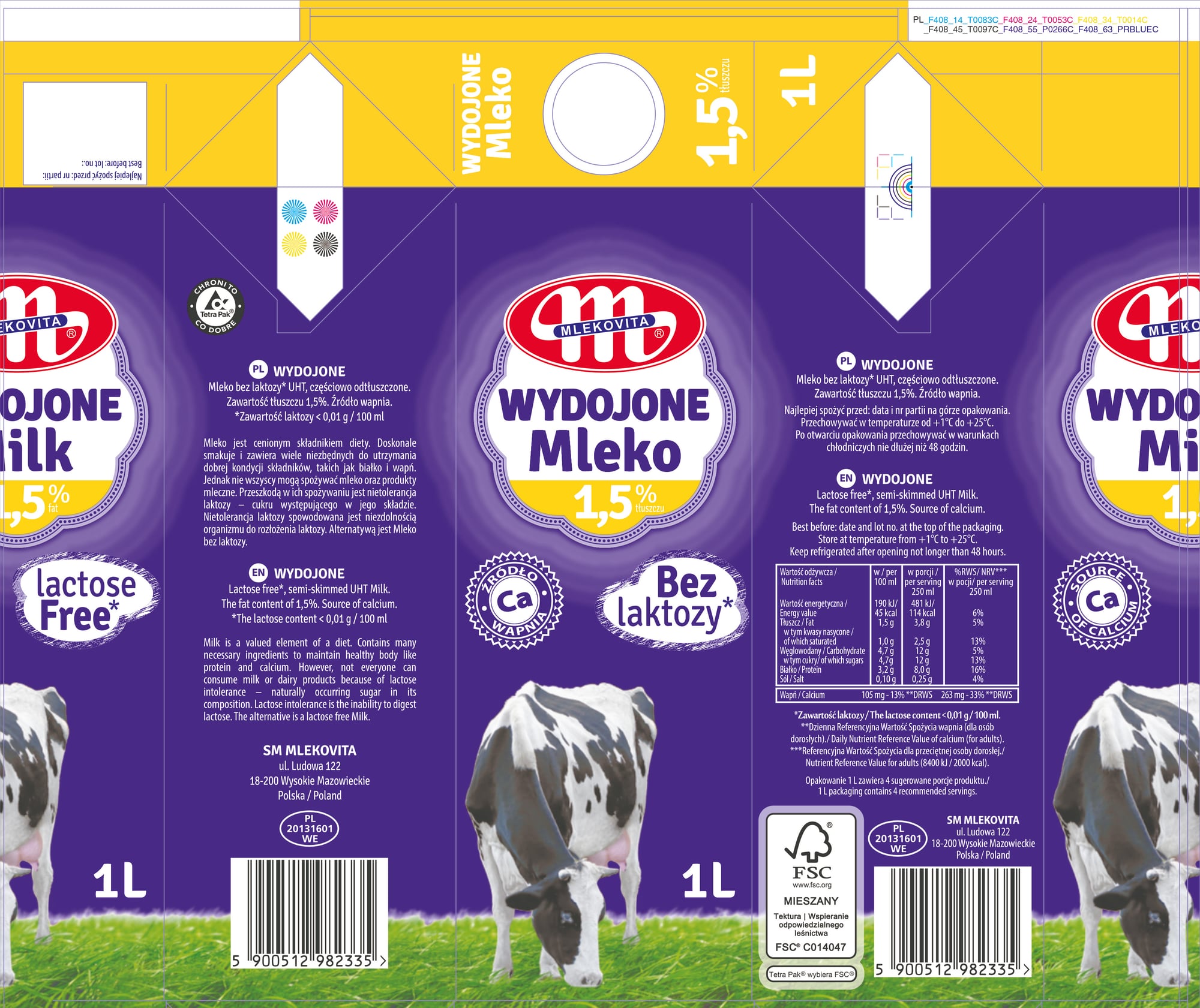 Mlekovita Mleko Wydojone bez laktozy 1.5% 1 l