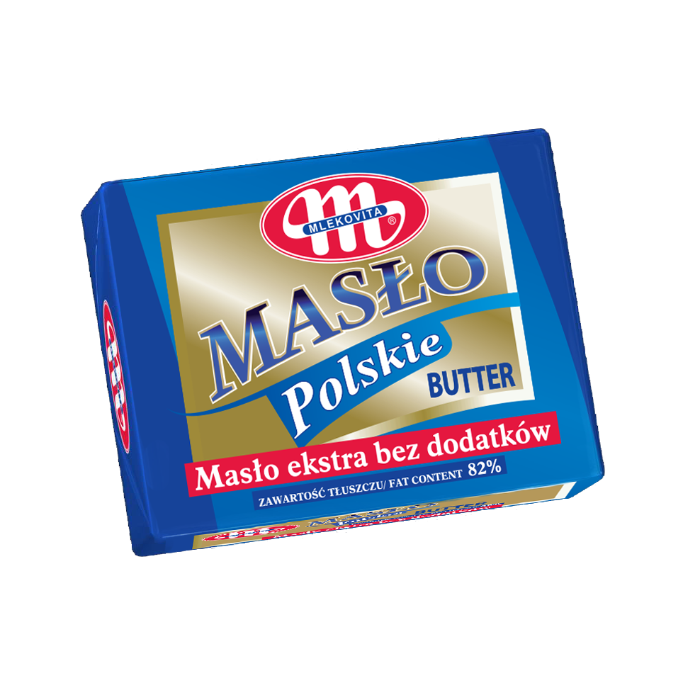 MasŁo ekstra polskie to masło bez żadnych dodatków o 82% zawartości tłuszczu. Produkowane na nowoczesnej linii do produkcji masła, w oparciu o własne instrukcje technologiczne. Długi dorobek, bogate doświadczenie w produkcji oraz zastosowana technologia pozwoliły na stworzenie oryginalnego, markowego produktu, który okazał się hitem na rynku masła w polsce. MasŁo polskie produkowane jest ze świeżej, pasteryzowanej śmietanki najwyższej jakości, pochodzącej z mleka pozyskiwanego z czystych ekologicznie terenów, co korzystnie wpływa na smakowo-zapachowe cechy masła. Zastosowana technologia pozwala uzyskać produkt o doskonałej smarowności oraz idealnej konsystencji. MasŁo polskie ma aromatyczny, czysty, mlekowy smak i zapach, z łagodnym i przyjemnym posmakiem pasteryzacji. Produkt przeznaczony jest nie tylko do smarowania pieczywa, ale także do duszenia, smażenia, przygotowywania kremów oraz innych celów kulinarnych, nadając im aromatyczność i doskonały smak