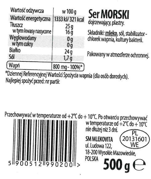 Mlekovita ser morski dojrzewający plastry 500 g