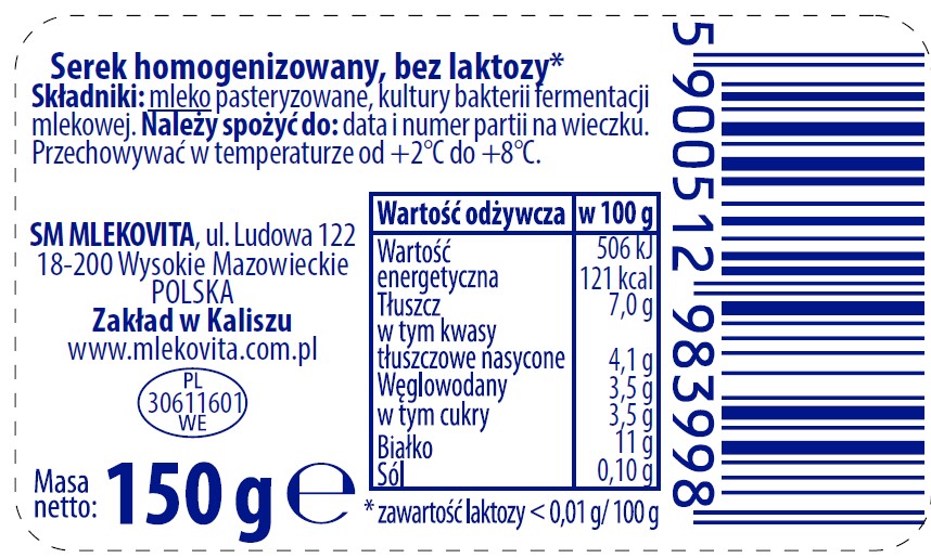 Mlekovita serek polski homogenizowany bez laktozy 150 g