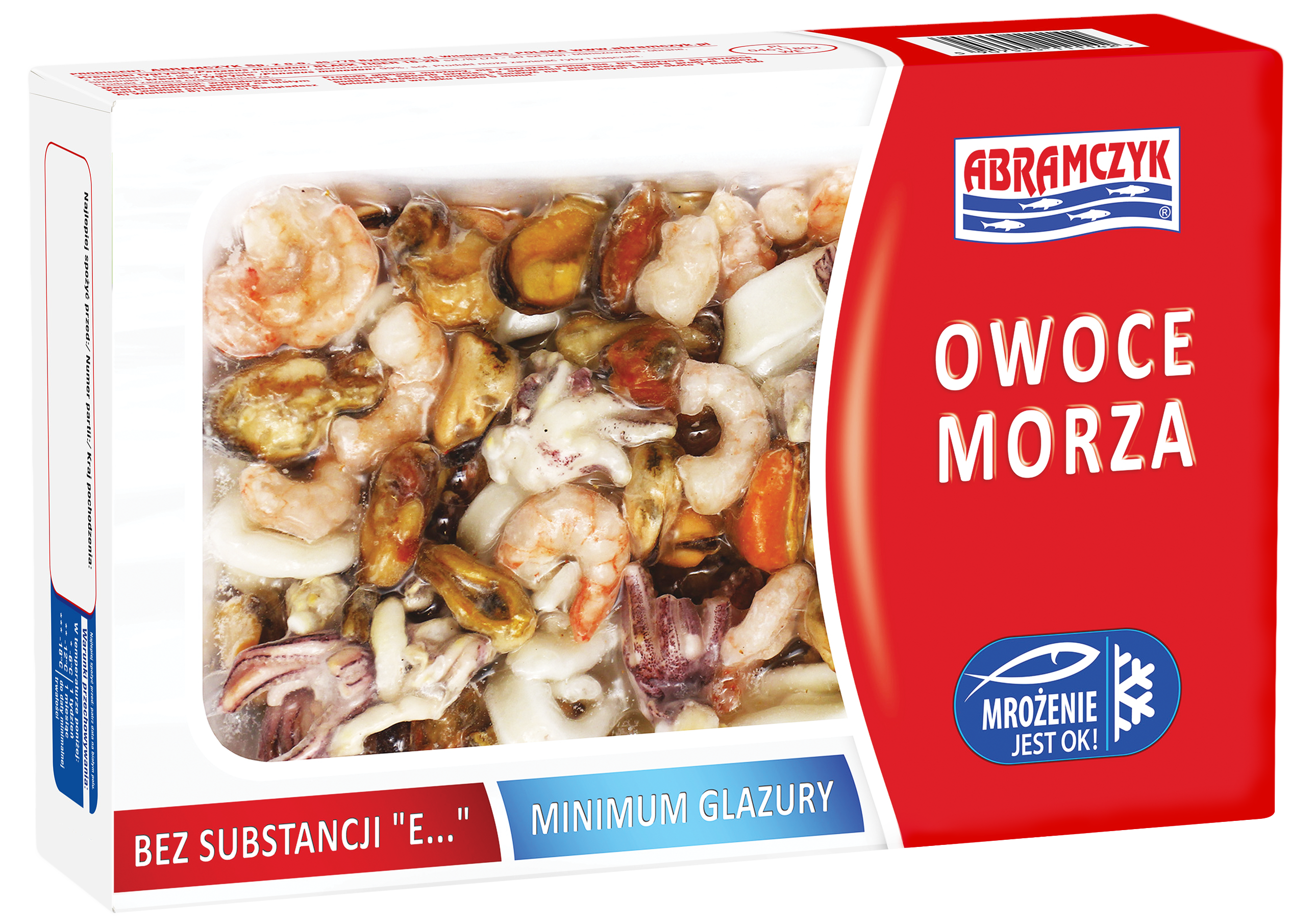 | Rozmiar owoców morza | Ośmiornica pospolita cięta 100-200, Kalmar indyjski krążki 60+, Kalmar indyjski macki 60+, Omułki chilijskie 200-300, Krewetki białe 100-200 |