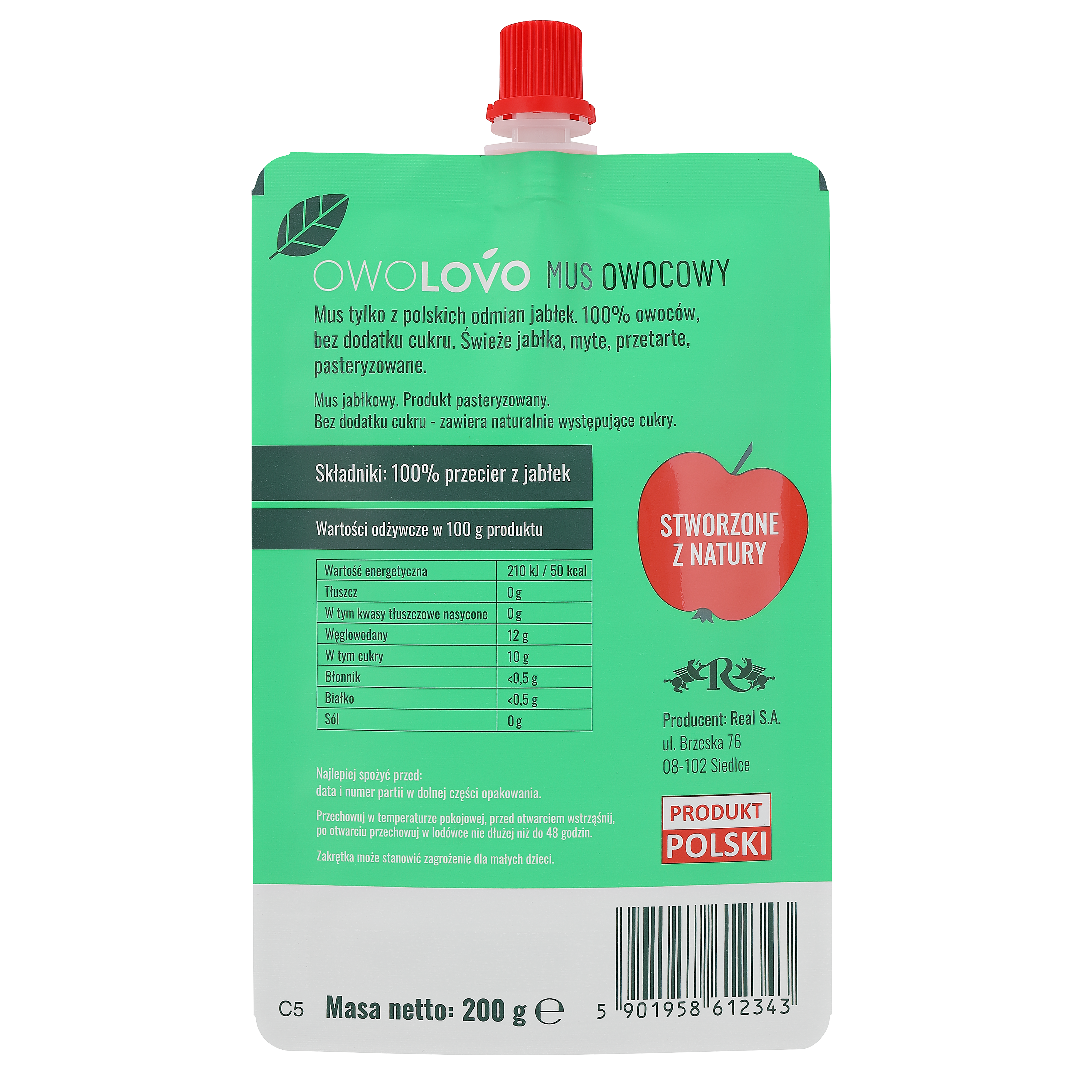 | Krótki opis marketingowy | Jabłkowo * mus jabłkowy. mus, tylko z polskich odmian jabłek. 100% owoców, bez dodatku cukru. |
