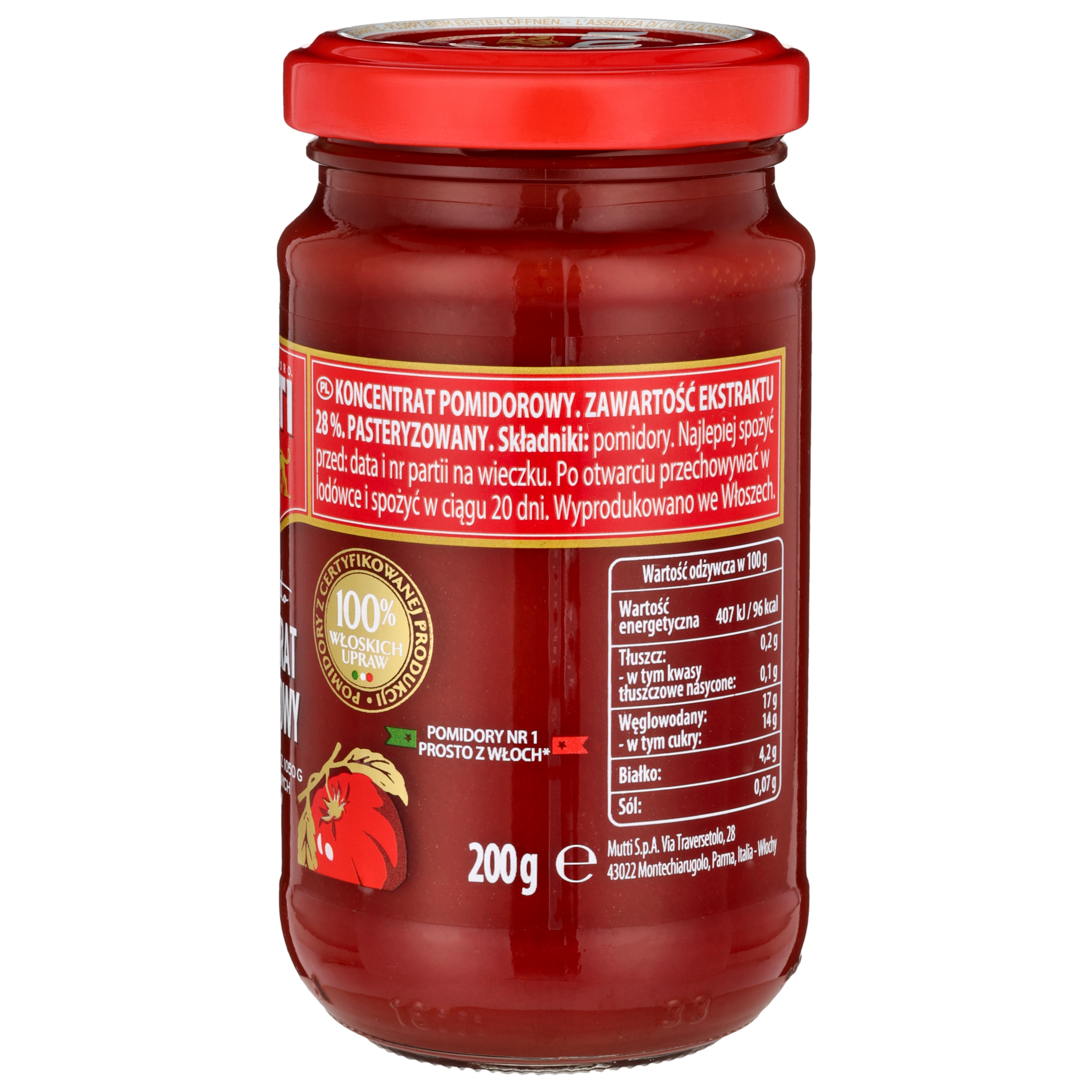 Przecier pomidorowy wytwarzany z najwyższej jakości pomidorów ze słonecznych rejonów Parmy. Gotowy sos całkowicie pozbawiony skórek i nasion, dzięki gęstej konsystencji jest bardzo wydajny i cechuje się słodkim smakiem. Bez sztucznych dodatków, tylko pomidor i sól. Gwarancja 100% włoskich upraw.