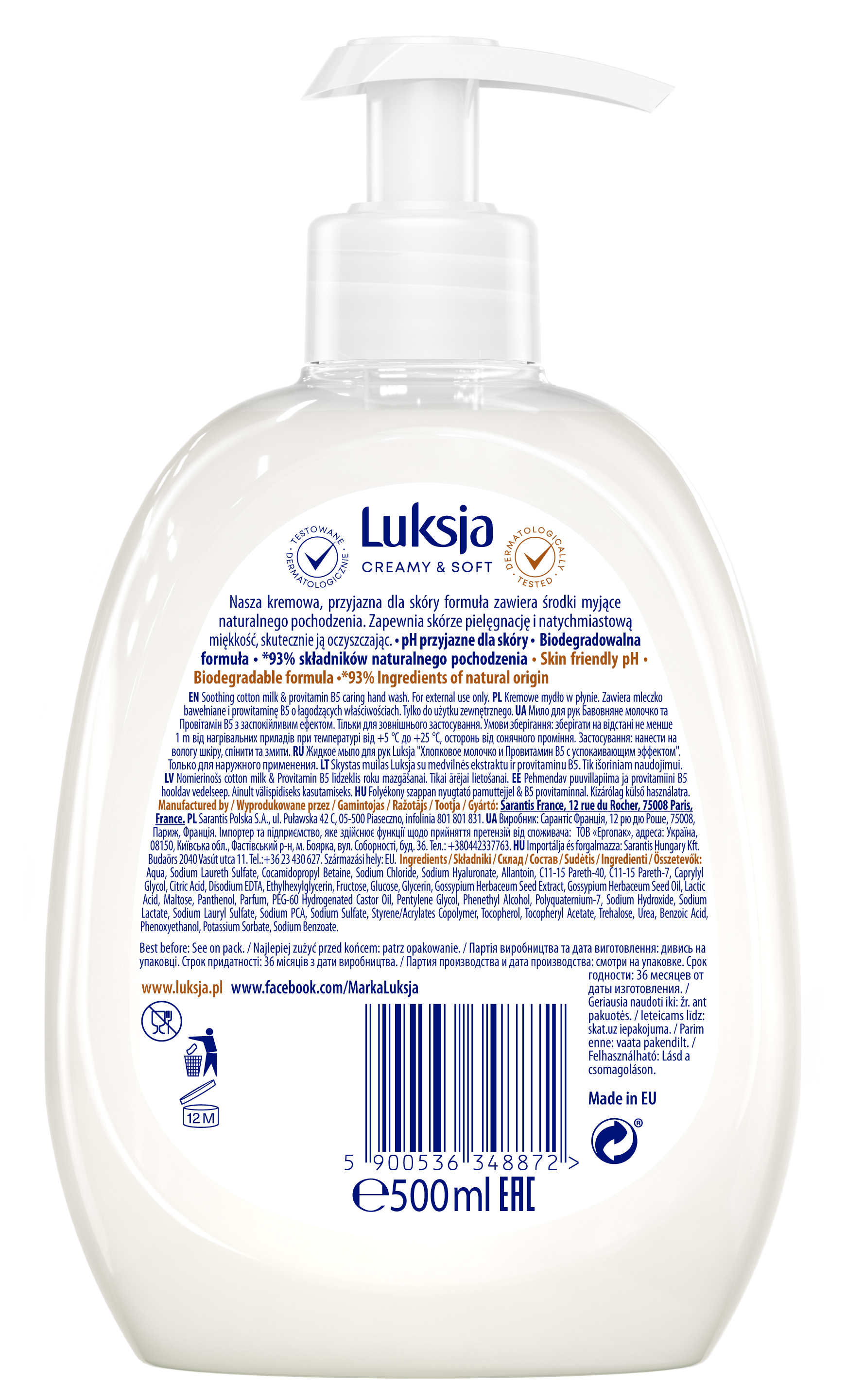 Mydło w płynie Luksja Creamy&Soft mleczko bawełniane i prowitamina B5 500 ml