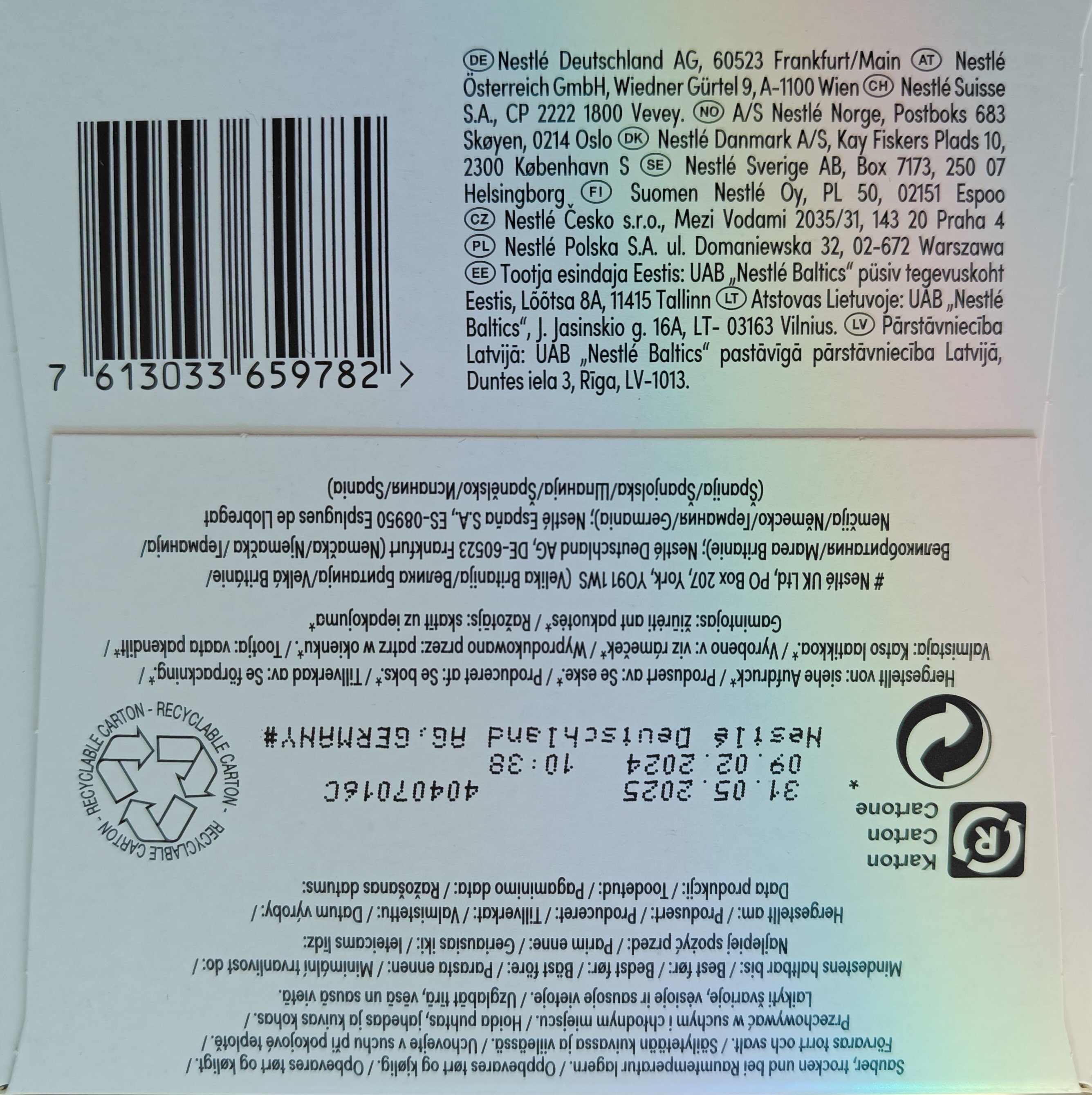 | Adres podmiotu wprowadzającego do obrotu | Nazwa firmy: nestle polska s.a ulica i numer: domaniewska 32 kod pocztowy i miasto: 02-672 warszawa pl |