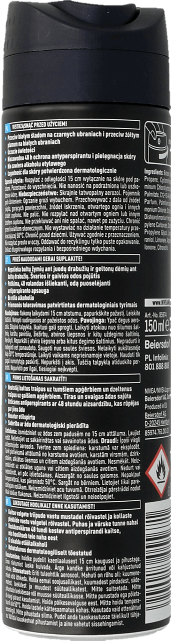NIVEA MEN® black&white power antyperspirant w sprayu. •Nie pozostawia białych sladów na czarnej odziezy •Chroni przed powstawaniem zółtych plam na białej odziezy •48h skuteczna ochrona antyperspirantu •Nie zawiera alkoholu i barwników •Łagodnosc dla skóry potwierdzona dermatologicznie.