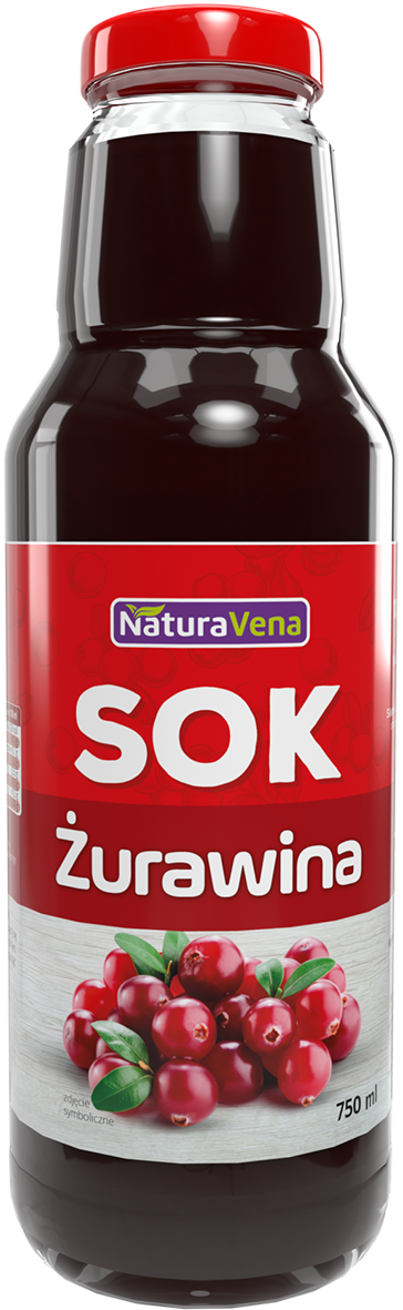 Sok z owoców żurawiny 100% odtworzony z zagęszczonego soku.