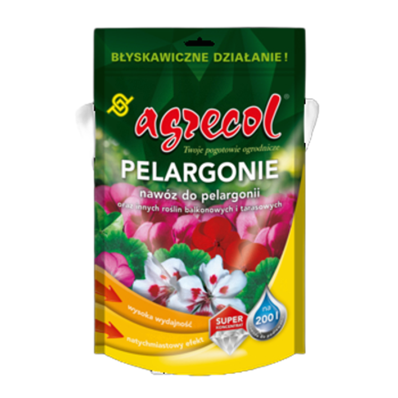 Nawóz przeznaczony do stosowania w uprawach wszystkich odmian pelargonii balkonowych, domowych i rabatowych. Zalecany również w uprawach pelargonii w kompozycjach z innymi roślinami.
