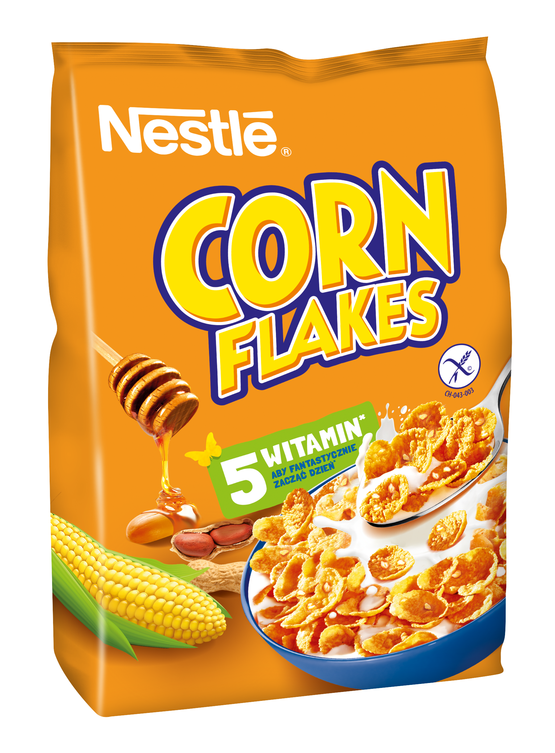 Chrupiące płatki kukurydziane Nestlé CORN FLAKES miód i orzeszki pokryte są złocistym miodem i orzeszkami. To pyszny sposób na śniadanie oraz cenne źródło ważnych witamin. Z Nestlé CORN FLAKES miód i orzeszki dobrze zaczniesz każdy dzień! Produkt bezglutenowy.