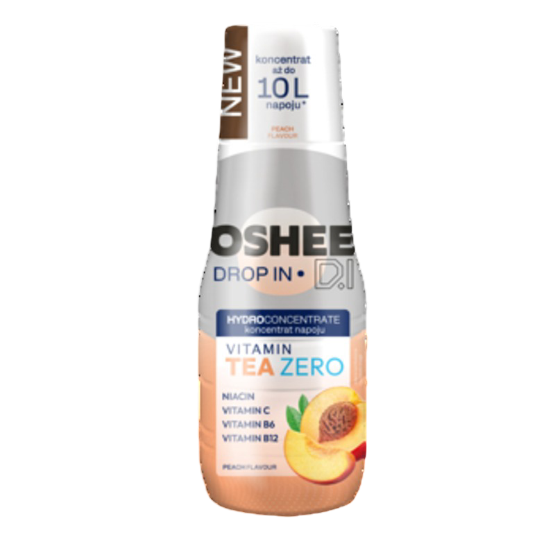 OSHEE Drop In to innowacyjna linia koncentratów nawadniających. OSHEE Drop In Hydroconcentrate Vitamin Tea Brzoskwinia Zero to produkt o wieloporcjowej skoncentrowanej formie o smaku brzoskwini, do samodzielnego przygotowania w ulubionych smakach OSHEE.