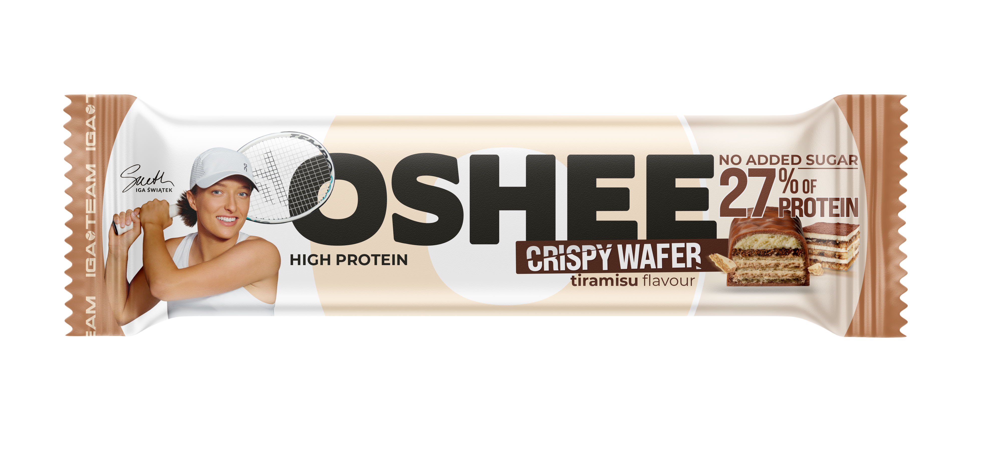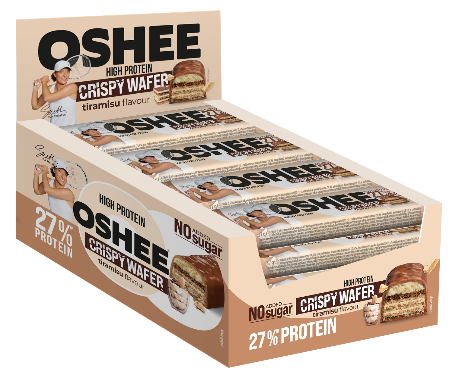 OSHEE baton proteinowy o smaku tiramisu to doskonały wybór dla osób aktywnych, które pragną zaspokoić swoje podniebienie jednocześnie dostarczając organizmowi niezbędne składniki odżywcze. Zapewnia nie tylko wyjątkowy smak, ale również dostarcza energii i białka potrzebnego do odbudowy i regeneracji mięśni.