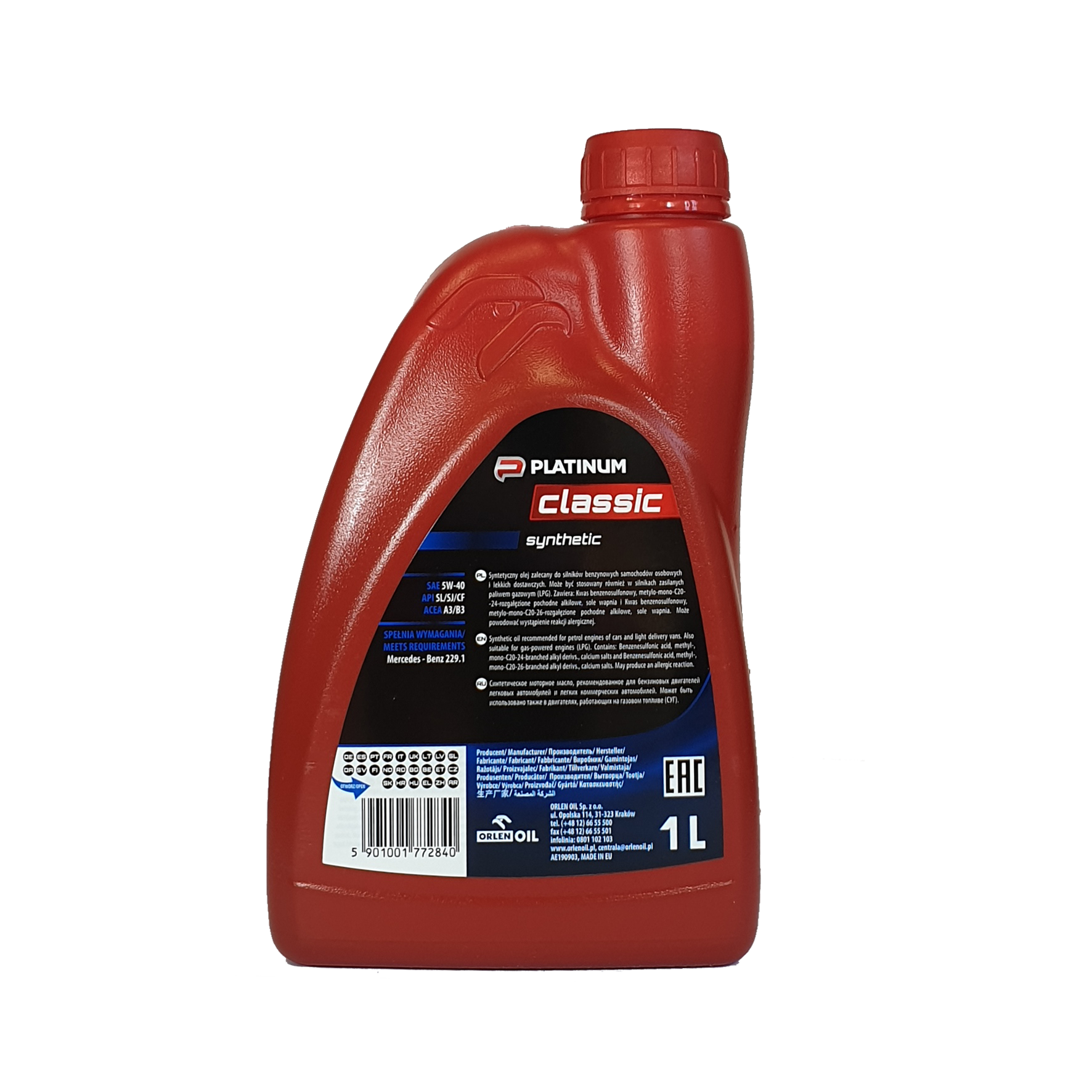 Wysokiej jakości, mineralny, wielosezonowy olej silnikowy opracowany z myślą o silnikach benzynowych i lekkich Diesla eksploatowanych w codziennych warunkach jazdy. Technologia oleju gwarantuje nie tylko optymalną ochronę silnika w każdych warunkach eksploatacji, ale zapewnia także doskonałe parametry oleju, redukuje ryzyko nadmiernego zużycia zaworów przy jednoczesnej, wysokiej kontroli osadów. PLATINUM Classic mineral 15W-40 zalecany jest do użycia zarówno w samochodach osobowych z silnikami benzynowymi i Diesla, jak również w lekkich samochodach dostawczych i furgonetkach. Stworzony z myślą o każdym kierowcy, dlatego doskonale sprawdza się w pojazdach poruszających się w ruchu miejskim jak również na trasach szybkiego ruchu. Przeznaczony do smarowania silników pracujących w normalnych warunkach eksploatacji zarówno w okresie letnim jak i zimowym. Nie ma zastrzeżeń, by olej stosować do silników starszych typów, gdzie producent zaleca używanie olejów klas niższych.