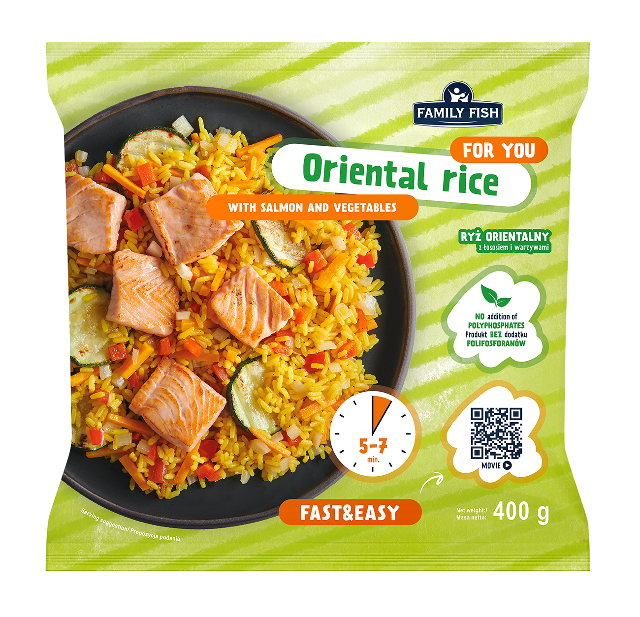 Oriental rice ryż orientalny z łososiem i warzywami, 400 g family fish