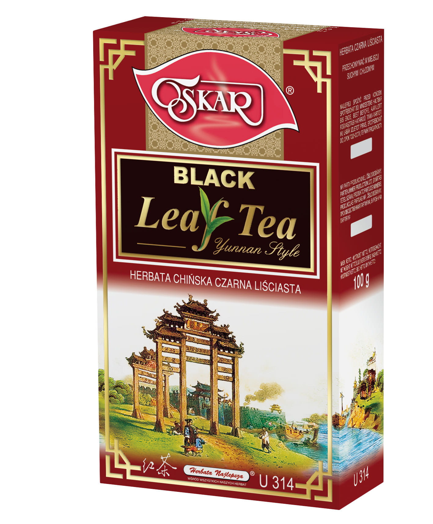 Herbata chińska z prowincji Yunnan, czarna, liściasta. Herbata w pełni sfermentowana (w przeciwieństwie do herbaty zielonej nie fermentowanej w ogóle). Zaparza się na bursztynowy kolor z delikatnym “dymnym” (charakterystycznym dla herbat z tej prowincji) aromatem. Oryginalnie paczkowana w Chinach.
