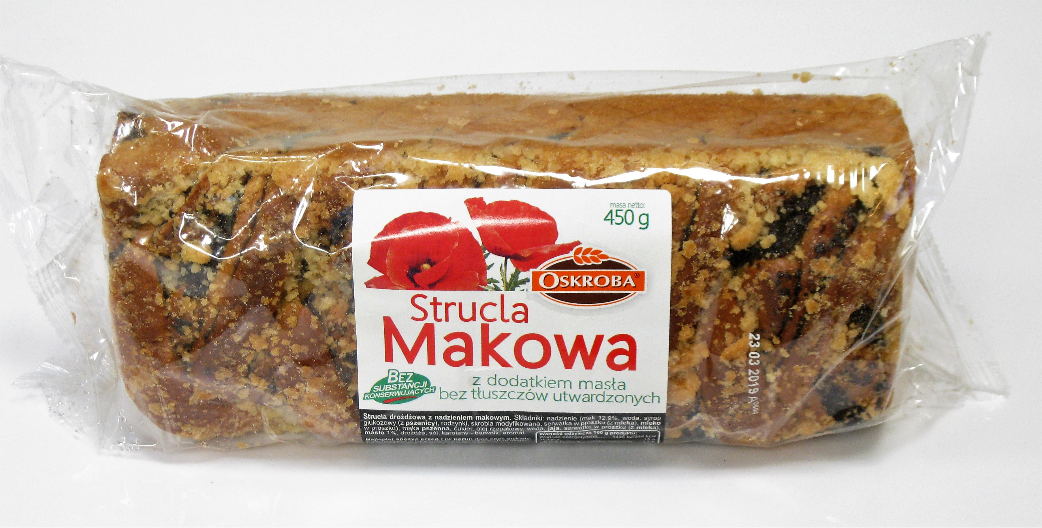 Strucla drożdżowa z nadzieniem makowym. Z dodatkiem masła. Bez tłuszczów utwardzonych. Bez substancji konserwujących.