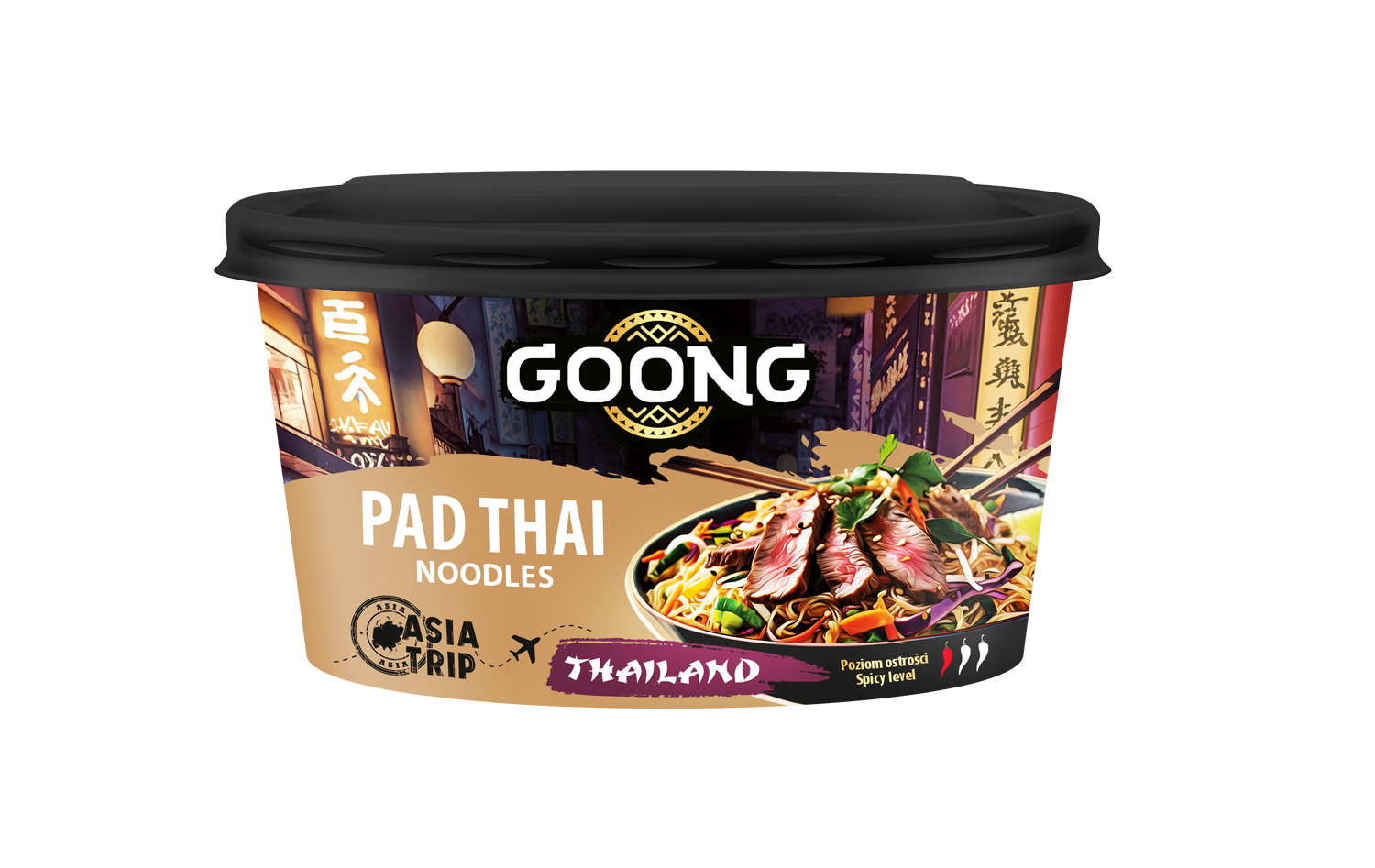 | Składniki | Makaron typu noodle 79,3 %: mąka pszenna, olej palmowy, skrobia ziemniaczana, tapioka – skrobia z manioku, sól, stabilizatory: e 501, e 339, e 450, e 451, e 452, e 412; cukier, wzmacniacz smaku: e 621; barwnik: e 160a; substancja spulchniająca: e 500; kurkuma, przeciwutleniacz: e 307. sos 20 %: cukier, olej palmowy, czosnek suszony, wzmacniacze smaku: e 621, e 635, e 627, e 631; sól, koncentrat gotowanego tamaryndowca (tamaryndowiec, woda, substancja konserwująca: e 202), woda, hydrolizowane białko sojowe, aromaty, ekstrakt drożdżowy, barwniki: e 150d, e 160c; regulator kwasowości: e 330; substancja konserwująca: e 202; przeciwutleniacz: e 307 opakowanie z warzywami 0,7 %: cebula dymka suszona (szczypiorek), papryczka chili suszona. |