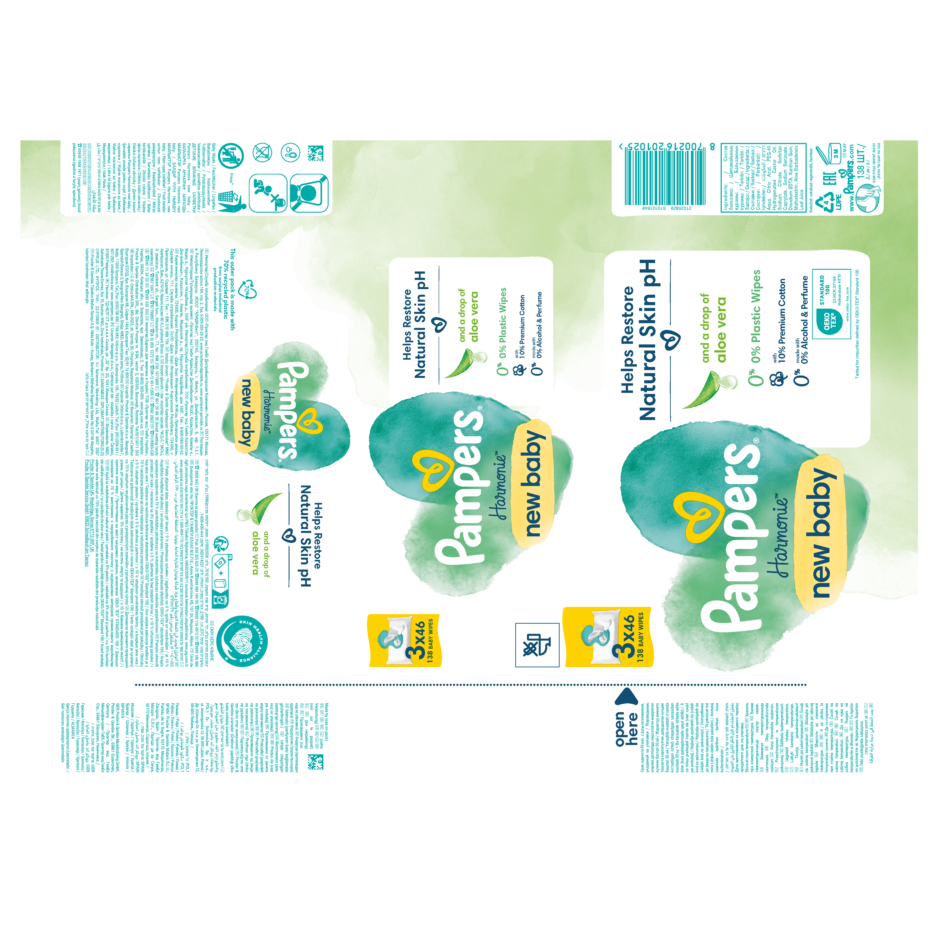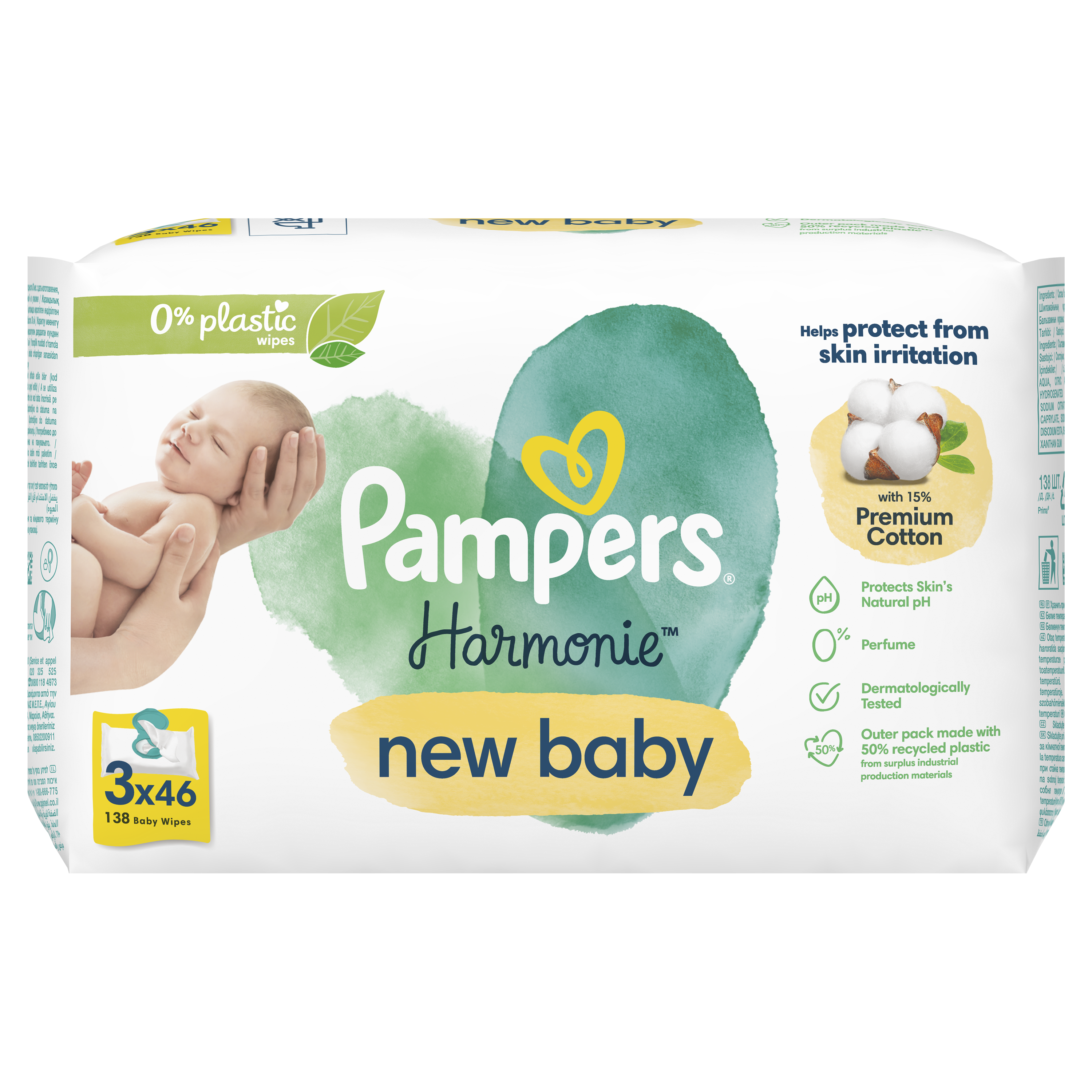 Pampers Harmonie New Baby Chusteczki nawilżane dla dzieci 3 opakowań = 138 chusteczek