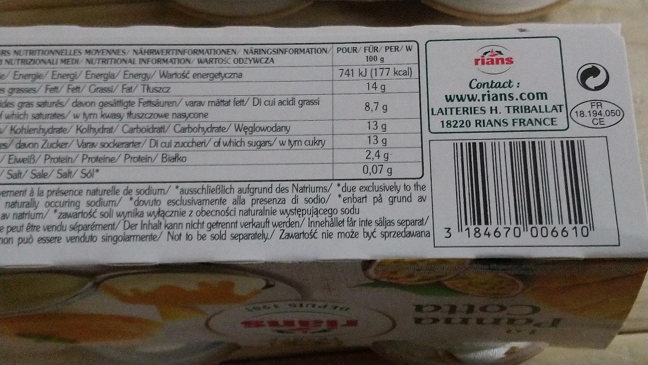 Wytwarzany w sercu francuskiego regionu Berry w wiosce Rians. Deser Panna Cotta jest produkowany z wyłącznie składników. Delikatna, świeża konsystencja, słodki smak wanilii, sprawia, że deser rozpływa się w ustach, zapewniając chwile prawdziwej rozkoszy smakowej. W połączeniu z sosem z egzotycznych owoców mango i marakui, Panna Cotta zapewnia owocową świeżość i niezwykłe przeżycie kulinarne.