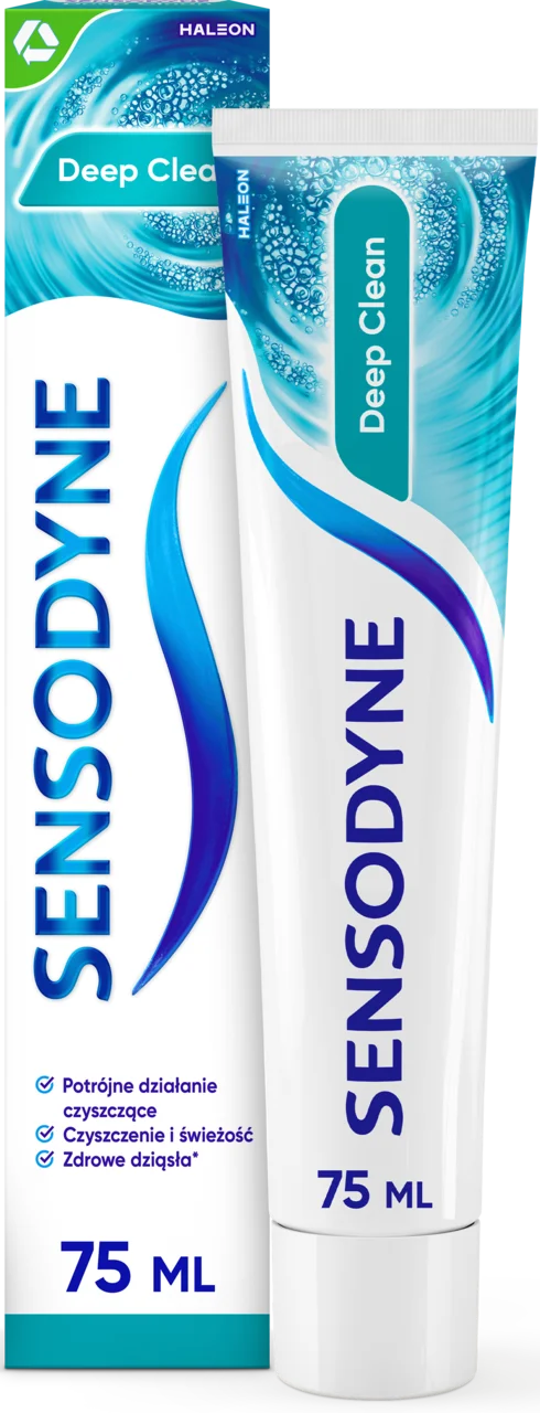 Jeśli podczas spożywania gorących, zimnych, słodkich i kwaśnych pokarmów, a nawet szczotkowania zębów odczuwasz krótki, przenikliwy ból, może to oznaczać, że Twoje zęby są nadwrażliwe. Pasta do zębów z fluorkiem Sensodyne Deep Clean do wrażliwych zębów została stworzona z myślą właśnie o Tobie, by zapewniać Twoim zębom odpowiednią pielęgnację i długotrwałą ochronę przed nadwrażliwością*. Formuła chroni zęby aż do 24 godzin* oraz oferuje wszystkie korzyści pasty do zębów. Dzięki fluorkowi Sensodyne Deep Clean wzmacnia i utwardza szkliwo, zapobiegając jego uszkodzeniom. Ta pasta z fluorem gwarantuje także zaawansowane czyszczenie, co pomaga utrzymać właściwą higienę zębów i jamy ustnej, a odpowiednio dobrane składniki zapewniają długotrwałe uczucie świeżości. Przekonaj się, że Sensodyne Deep Clean to doskonały wybór dla Twoich zębów! *przy szczotkowaniu 2 razy dziennie.