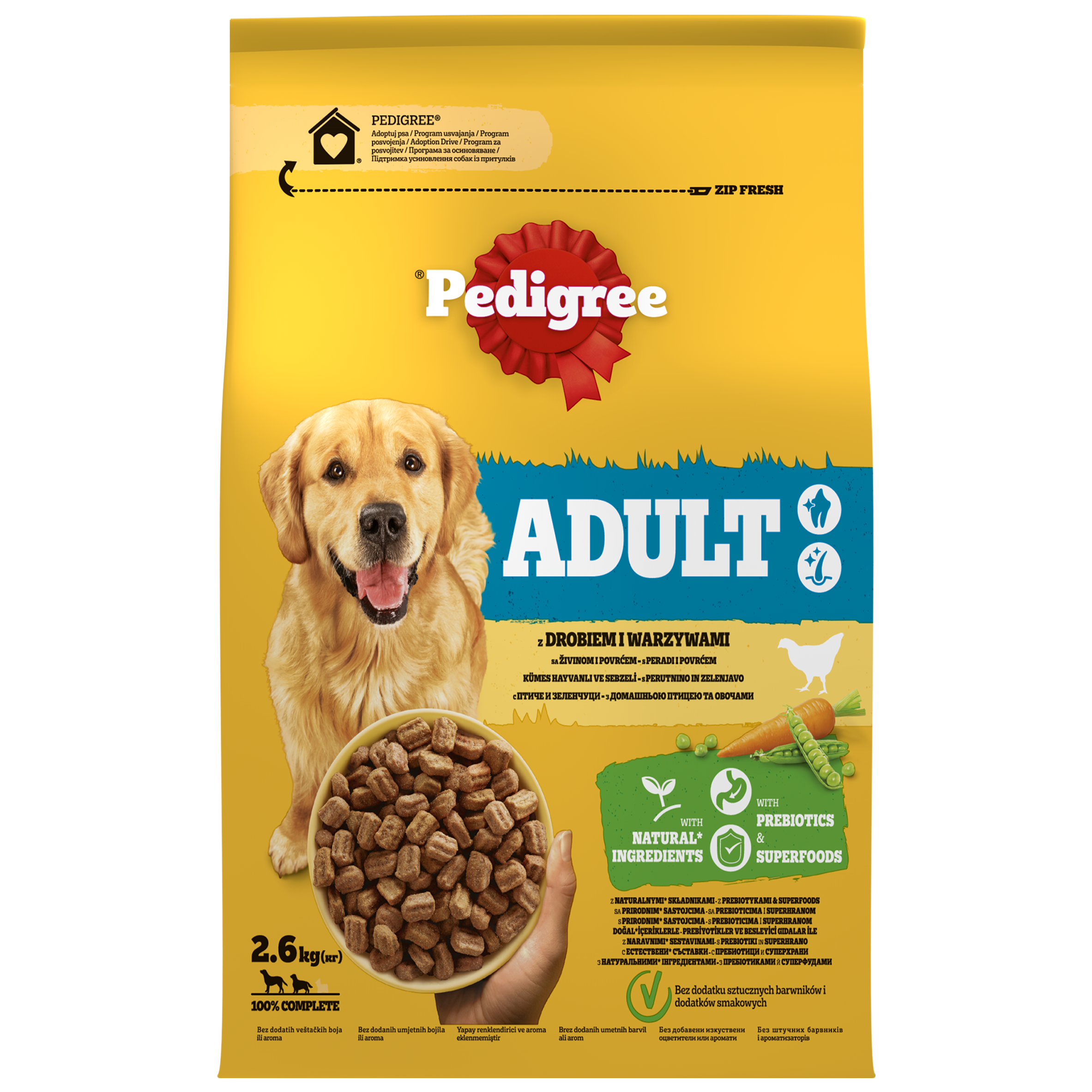 W 100% pełnowartościowa i zbilansowana karma Pedigree Vital Protection Small Dogs z Wołowiną i warzywami to szczególnie smaczne i pożywne suche jedzenie, idealne na codzienne posiłki psów małych ras. Mniejsze granulki, szczególnie smaczne nawet dla wybrednych psów, są łatwe do gryzienia i dają dużo radości. Opracowana z pomocą specjalistów ds. żywienia i lekarzy weterynarii z Centrum Żywienia Zwierząt w Waltham, karma sucha Pedigree Small Dog z Wołowiną i warzywami dla psów małych ras zawiera wszystkie niezbędne substancje odżywcze, aby wspomagać dobre trawienie, zdrową skórę i sierść, wysoką odporność oraz higienę jamy ustnej. A w przypadku małych psów o specyficznych potrzebach, wspomaga również zdrowie stawów, kontrolę wagi oraz zdrowie układu moczowego. Specjalna struktura granulek pomaga oczyszczać zęby psa, wspierając ich zdrowie, i jest idealnym uzupełnieniem codziennej pielęgnacji jamy ustnej. 1. 100% pełnowartościowa i zbilansowana, smaczna sucha karma o smaku wołowiny i warzyw dla psów małych ras 2. Pożywienie, które wspomaga pielęgnację jamy ustnej, dobre trawienie, zdrową skórę i sierść oraz wysoką odporność 3. Szczególnie smaczne suche jedzenie dla psów małych ras, z mniejszymi granulkami, które są łatwiejsze do gryzienia i dają dużo radości 4. Karma dla psów opracowana przez spejalistów ds. żywienia i lekarzy weterynarii z Centrum Żywienia Zwierząt w Waltham
