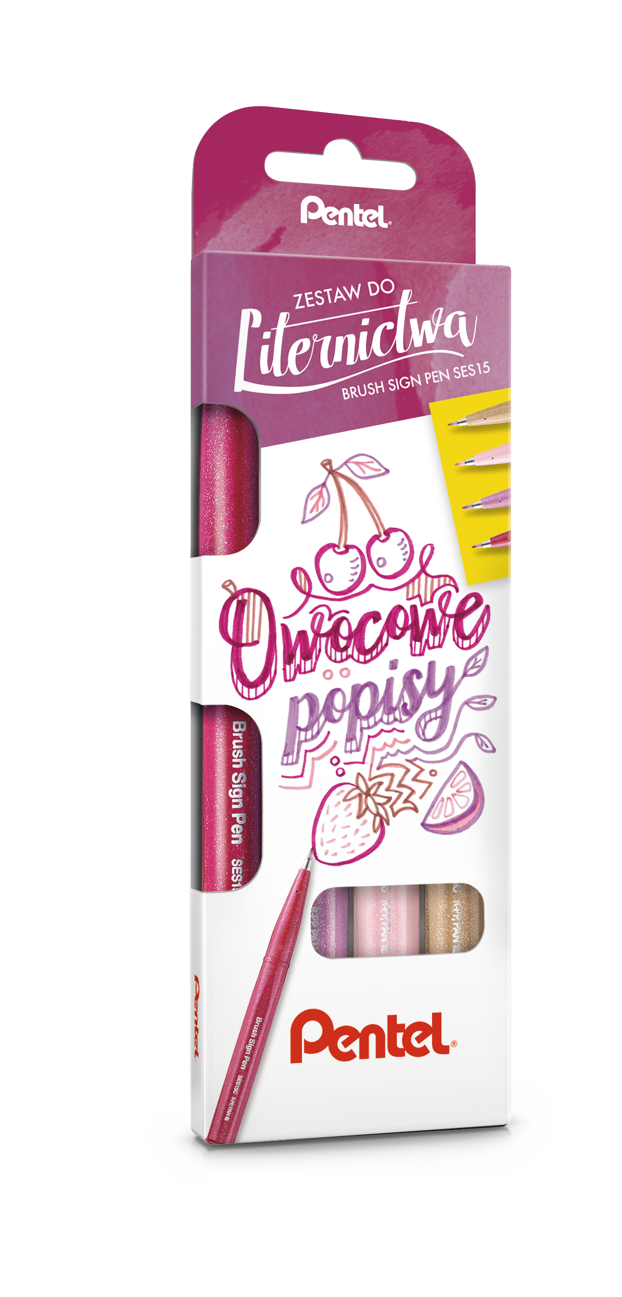 Pentel Zestaw 4 pisaków/pędzelków SES15C Brush Sign Pen - Owocowe popisy