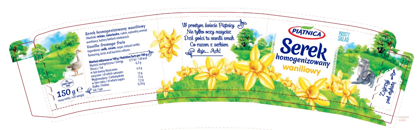 Pyszny serek o kremowej konsystencji to propozycja dla wszystkich smakoszy produktów mleczarskich. Ponadczasowy smak, który pamiętamy z dzieciństwa oraz prosty skład to główne zalety nowego serka homogenizowanego. Wyprodukowane z mleka najwyższej jakości występują w czterech ulubionych zarówno przez dzieci jaki i dorosłych wersjach smakowych: waniliowym, truskawkowym, stracciatella oraz . Znakomicie wpisują się w kategorię pożywnych i zdrowych przekąsek oraz deserów.