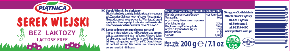 Serek Wiejski typu cottage cheese – wprowadzony przez OSM Piątnica na rynek polski w 1992 roku − jest znany i ceniony w całym kraju za najwyższą jakość i wysokie walory smakowe. Serek Wiejski to delikatne ziarenka twarożku zanurzone w słodkiej śmietance. skład i brak konserwantów sprawia, że jest bardzo wrażliwy na warunki przechowywania. Serek dostępny jest w kubeczkach 200 g oraz w wersji rodzinnej 500 g. Od ponad 20 lat Piątnica jest niekwestionowanym liderem w tej kategorii produktowej z dominującym udziałem w rynku.