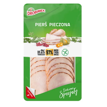 PIERŚ PIECZONA-PRODUKT BEZGLUTENOWY Z MIĘSA PIERSI KURCZĄT GRUBO ROZDROBNIONY,PARZONY,PIECZONY, W PLASTRACH.