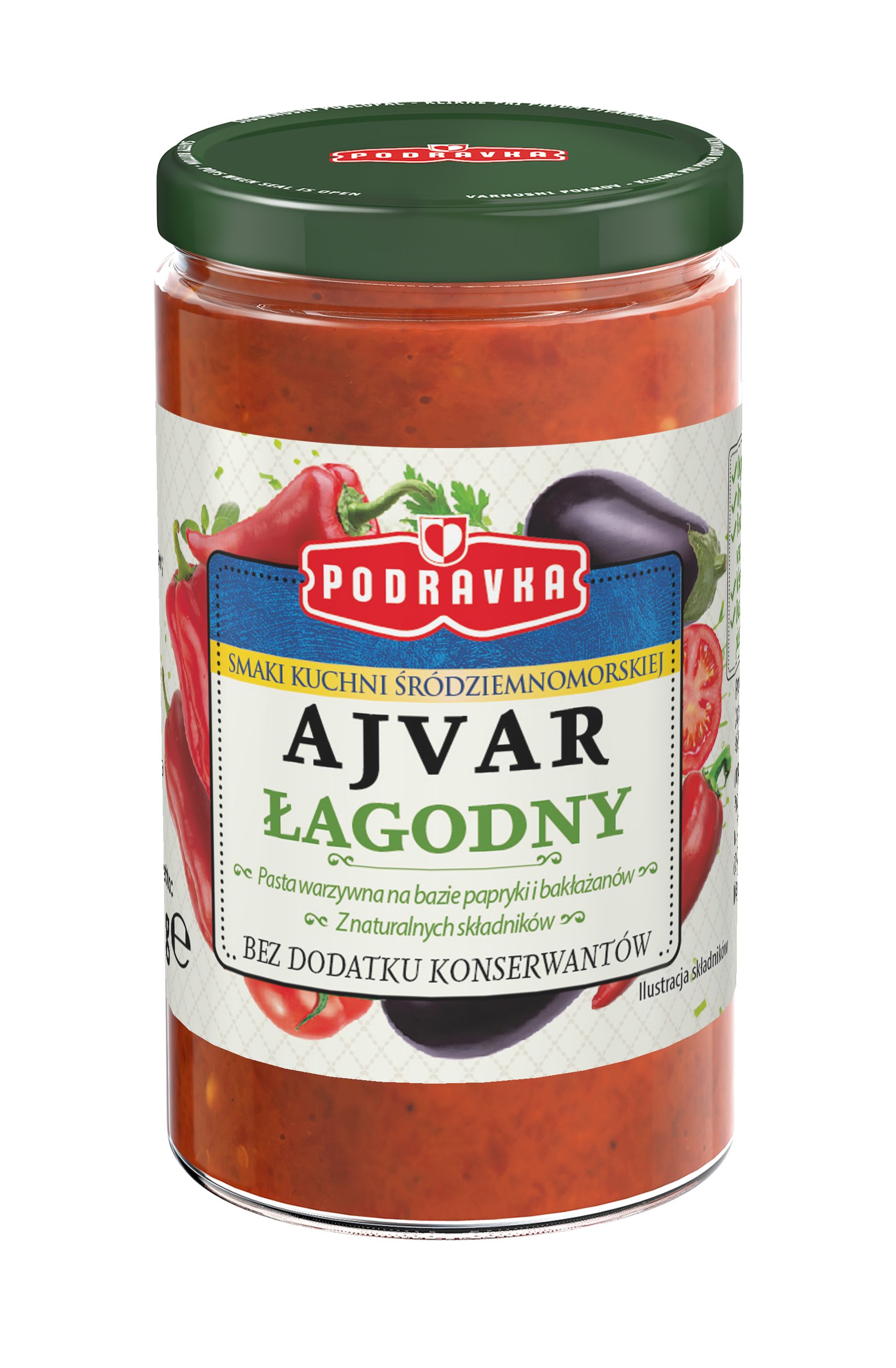 Podravka Ajvar łagodny Pasta warzywna papryka & bakłażan 195 g