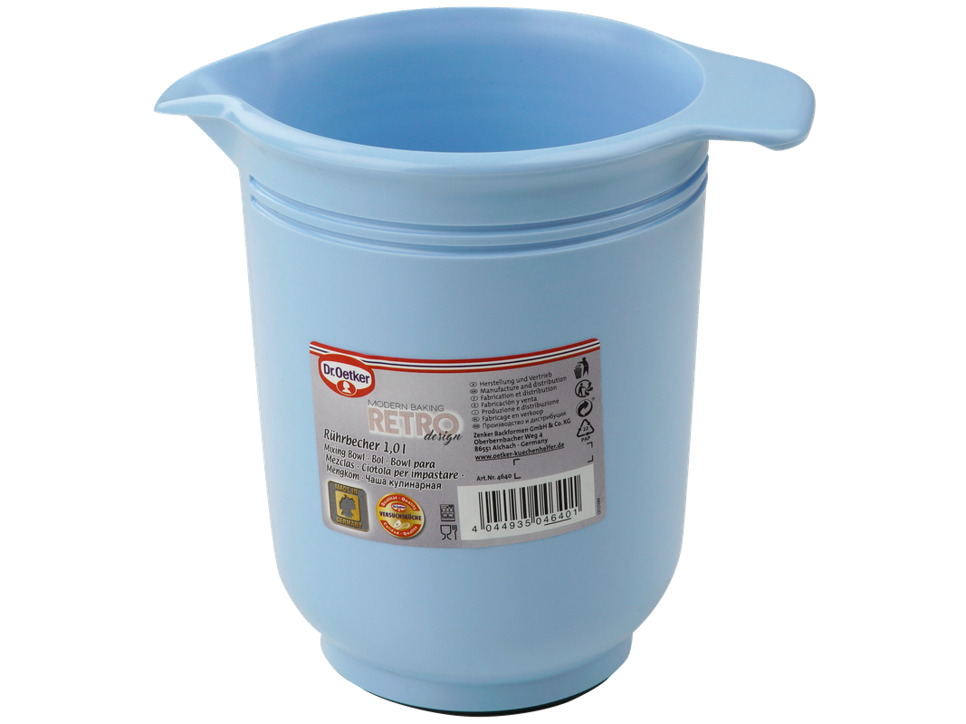 Miska do do mieszania, ubijania i nalewania śmietany oraz różnych rodzajów ciasta – nadaje się do mycia w zmywarce. Brand Dr Oetker. Pojemność 1 litr.