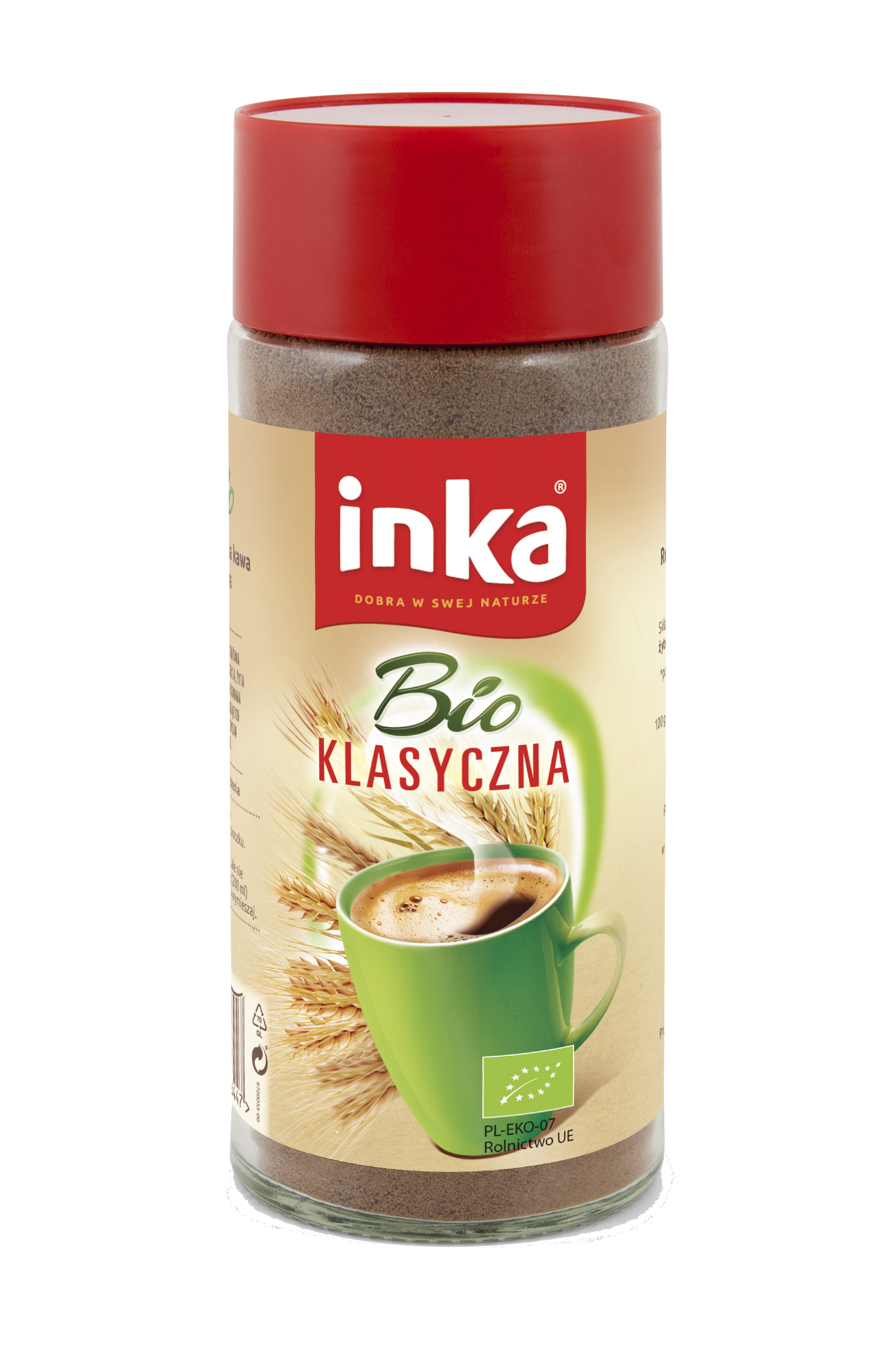 Inka Bio Klasyczna to rozpuszczalna kawa zbożowa. Doskonała i harmonijna kompozycja jęczmienia, żyta i cykorii. Jest wyprodukowana ze składników pochodzących z certyfikowanych upraw ekologicznych.