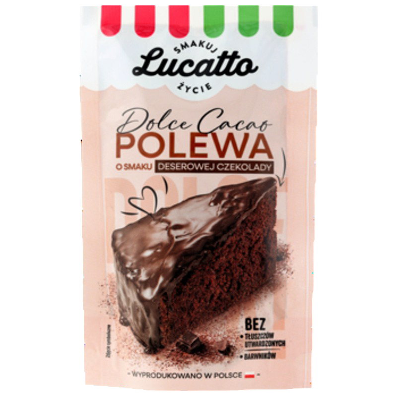 Nasza polewa o smaku deserowej czekolady do dekoracji ciast i deserów to szybki sposób na idealną dekorację Twojego ciasta. Podgrzej w gorącej wodzie (lub w mikrofalówce), polej i podziwiaj, jak gładka, aksamitna warstwa o smaku deserowej czekolady zamienia zwykłe ciasto w deser godny mistrza. Idealna na każdą okazję. Jeśli w saszetce zostanie porcja polewy - możesz po prostu podgrzać i użyć ponownie.