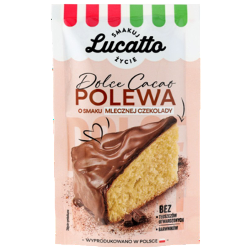 Nasza polewa o smaku mlecznej czekolady do dekoracji ciast i deserów to szybki sposób na idealną dekorację Twojego ciasta. Podgrzej w gorącej wodzie (lub w mikrofalówce), polej i podziwiaj, jak gładka, aksamitna warstwa o smaku mlecznej czekolady zamienia zwykłe ciasto w deser godny mistrza. Idealna na każdą okazję. Jeśli w saszetce zostanie porcja polewy - możesz po prostu podgrzać i użyć ponownie.