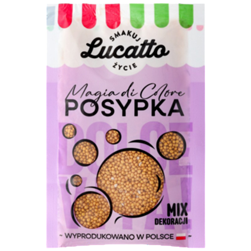 Nadaj swoim wypiekom wyjątkowego blasku dzięki posypce Złoty Maczek. To prosty sposób, aby ciasta, torty, babeczki czy desery nabrały eleganckiego, świątecznego charakteru i zachwycały nie tylko smakiem, ale też wyglądem. Wygodna porcja 30 g sprawia, że masz zawsze pod ręką idealną ilość do udekorowania wypieków – szybko, łatwo i efektownie.