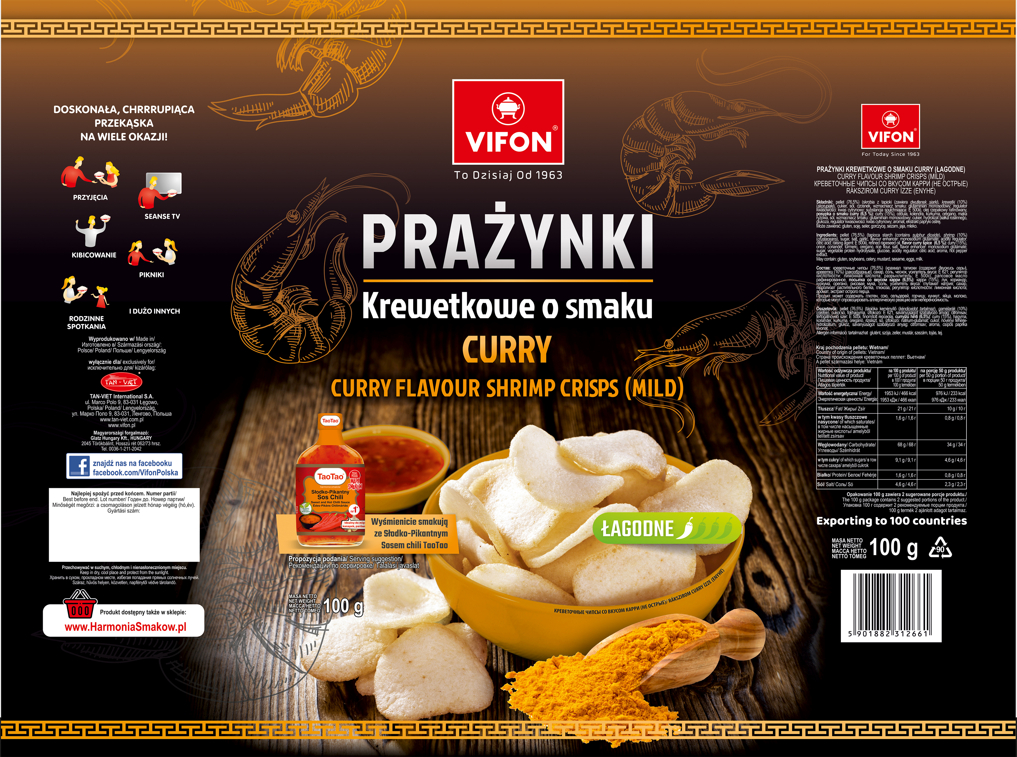 | Krótki opis marketingowy | Chrupiące, lekkie i zarazem łagodne prażynki o orientalnym smaku curry |