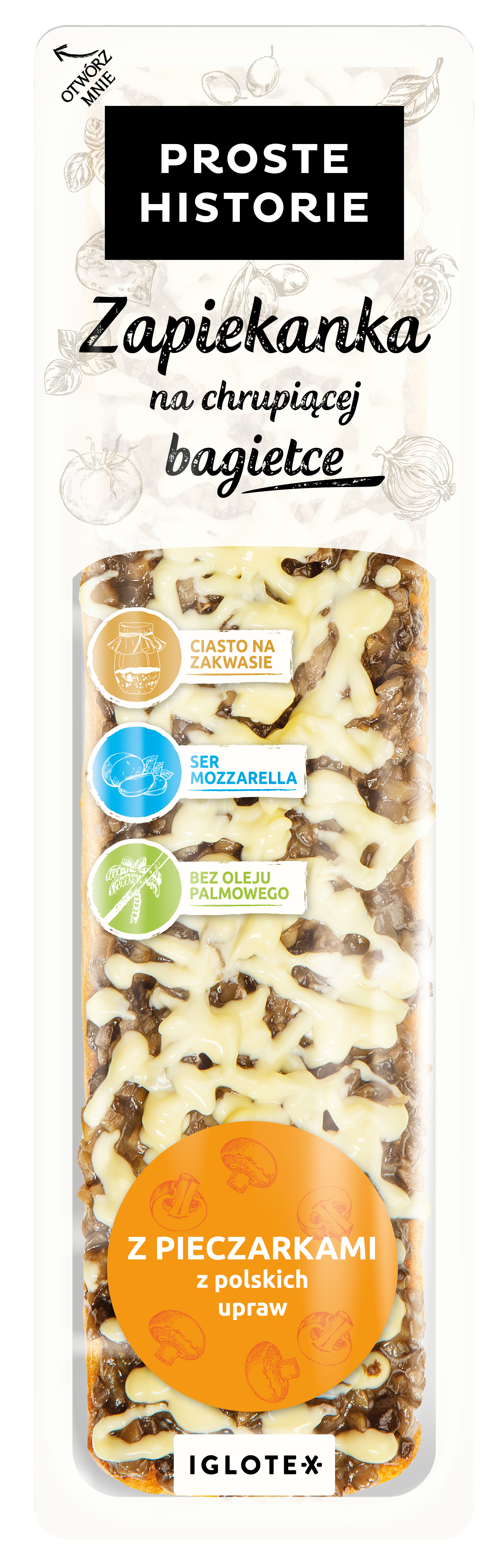 Chrupiąca bagietka oraz bogactwo pieczarek i sera to początek historii naszej zapiekanki. To smak jak za dawnych lat, który możesz rozwinąć, dodając własne, smaczne zakończenia.