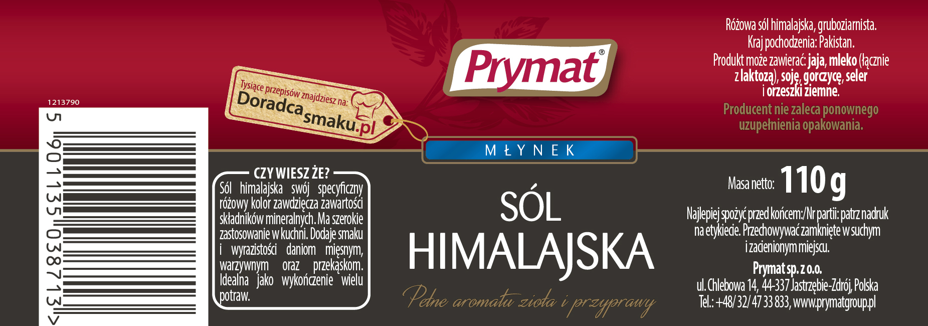 Sól himalajska Prymat w młynku jest alternatywą dla soli kuchennej. Pochodzi ona z rejonu dzisiejszego Pakistanu. Od klasycznej soli różni ją kolor – jest bladoróżowy, co wpływa często na apetyczność dania, zwłaszcza jeśli udekorujemy je większymi kryształkami wspomnianej soli. Tę atrakcyjną barwę sól himalajska zawdzięcza obecności śladowych ilości tlenków żelaza w swoim składzie. Spożywana jest w postaci nieprzetworzonej i nieoczyszczonej, dlatego właśnie uznaje się ją za zdrowszy wariant soli.