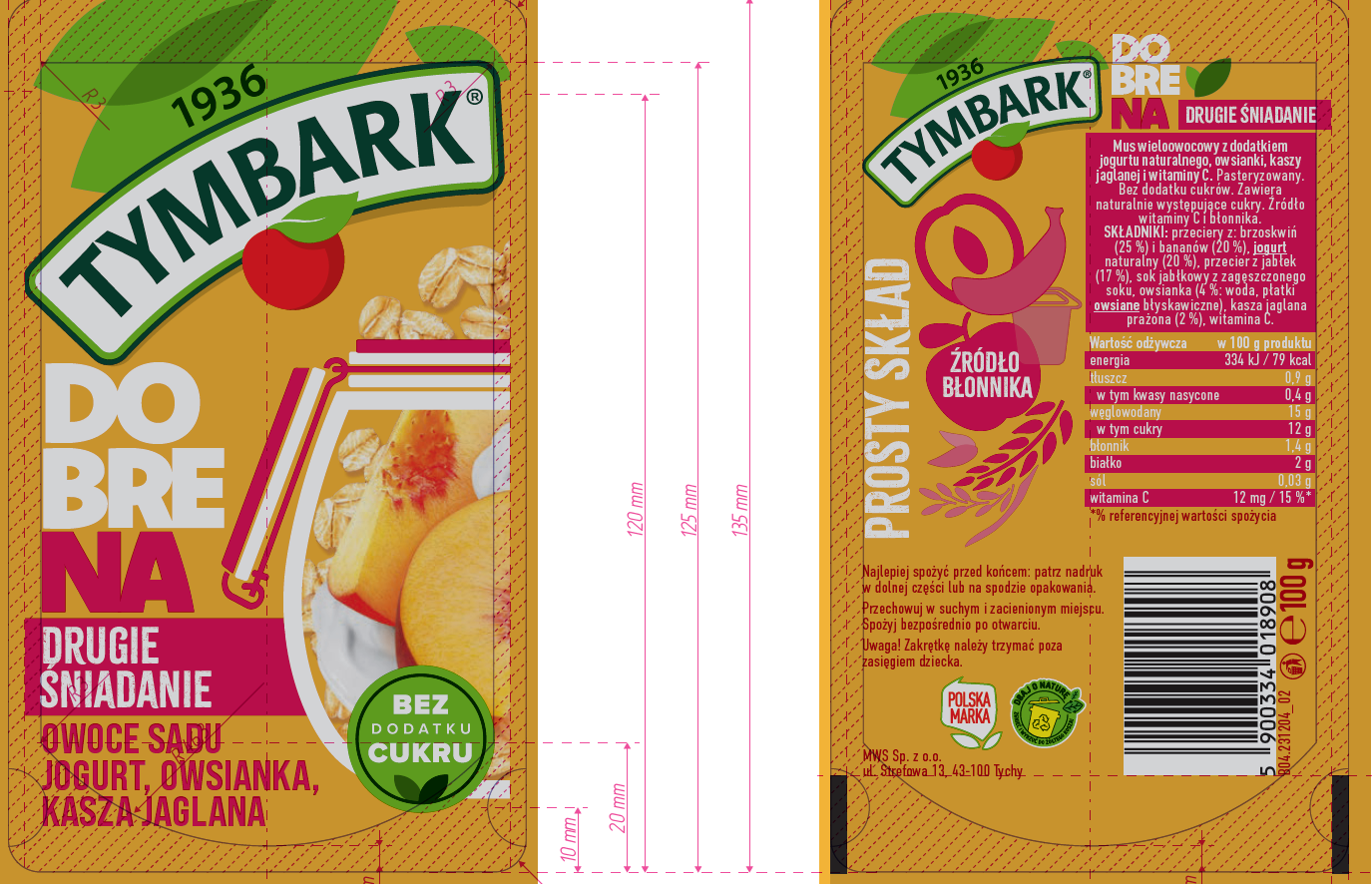 Przekąska na 2 śniadanie jogurt & zboża + owoce sadu Tymbark 100 g