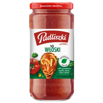 | Składniki | Przecier pomidorowy 56%, pomidory 26%, warzywa (cebula 8,3%, merchew), cukier, sól, czosnek 0,75%, olej rzepakowy, bazylia 0,4%, oliwa z oliwek 0,3%, regulator kwasowości (kwas cytrynowy), zioła, przyprawy. produkt pasteryzowany. bez substancji konserwujących, barwiących i zagęszczających, 166g pomidorów na 100g produktuy. |