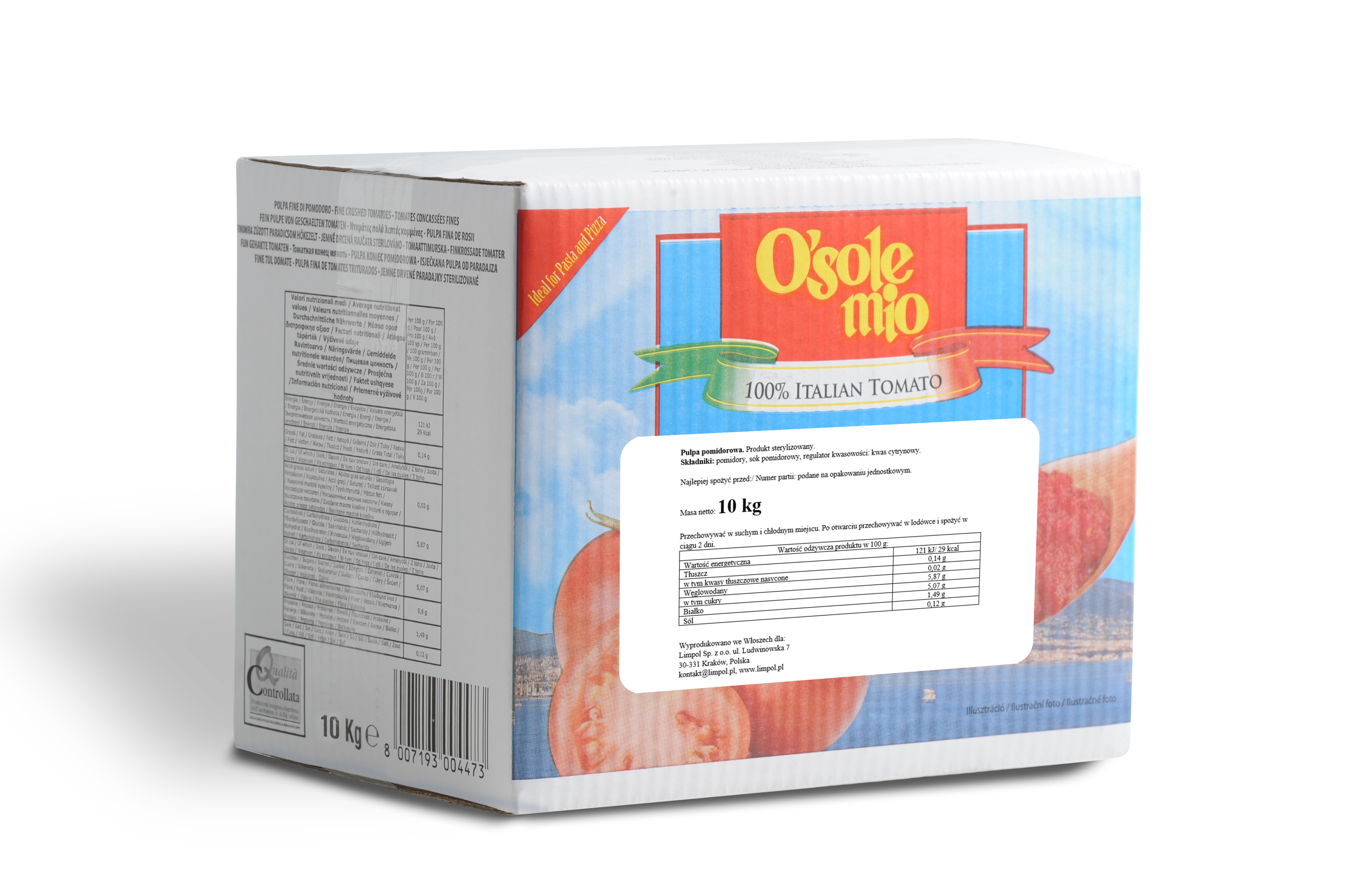 Pulpę "O'sole mio" sprowadzamy ze słonecznej Italii. To gęsty przecier z soczystych i wyselekcjonowanych pomidorów o niejednolitej konsystencji. Ma intensywny, świeży i lekko kwaśny smak oraz piękny kolor.