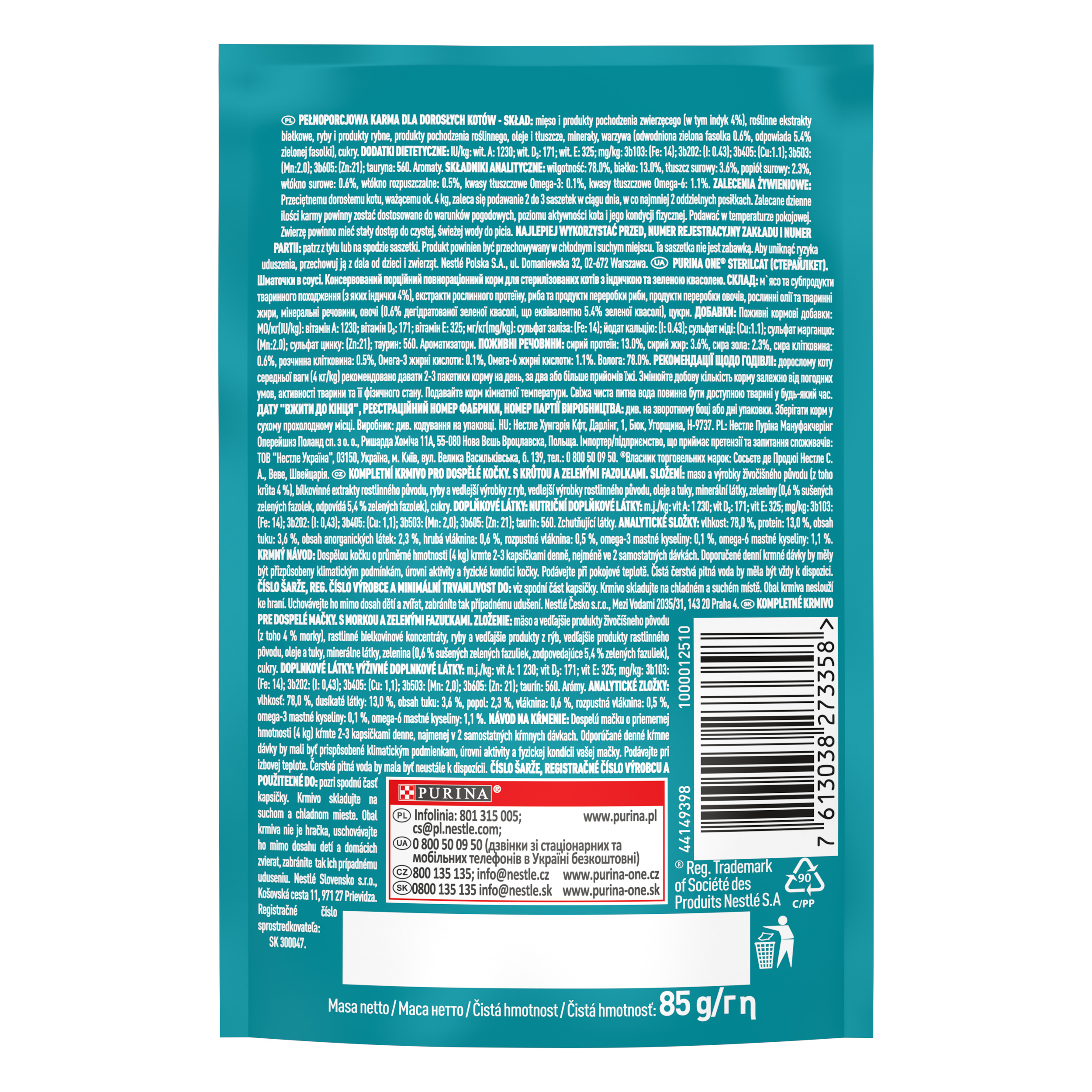 Purina one sterilcat 85 g ind/grosz