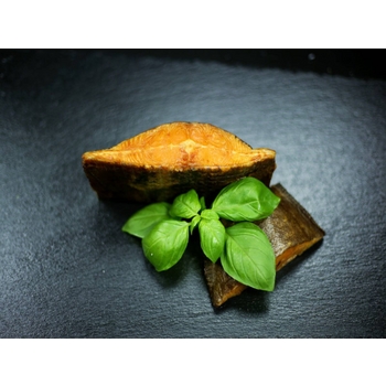Łosoś poddany patroszeniu, bez głowy, przecięty na pół wzdłuż linii kręgosłupa. Trym E: usunięty kręgosłup, ości brzuszne, tylne płetwy, kość obojczyka, tłuszcz na płetwie brzusznej usunięty częściowo, usunięte ości, ścięty ogon, usunięta otrzewna i skóra. Filet wykonany z surowca 5-6 lub 6-7 kg.