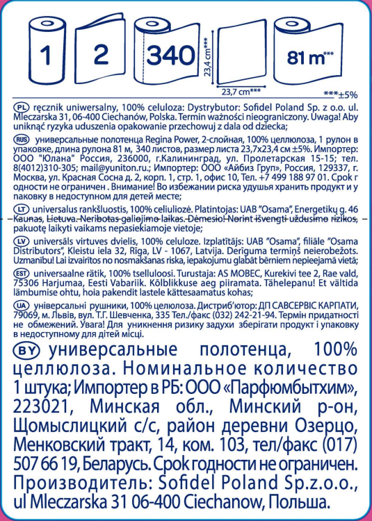 | Producent: | Sofidel Poland Sp. z o.o.Ulica i numer: Mleczarska 31Kod pocztowy i miasto: 06-400 Ciechanów PL |