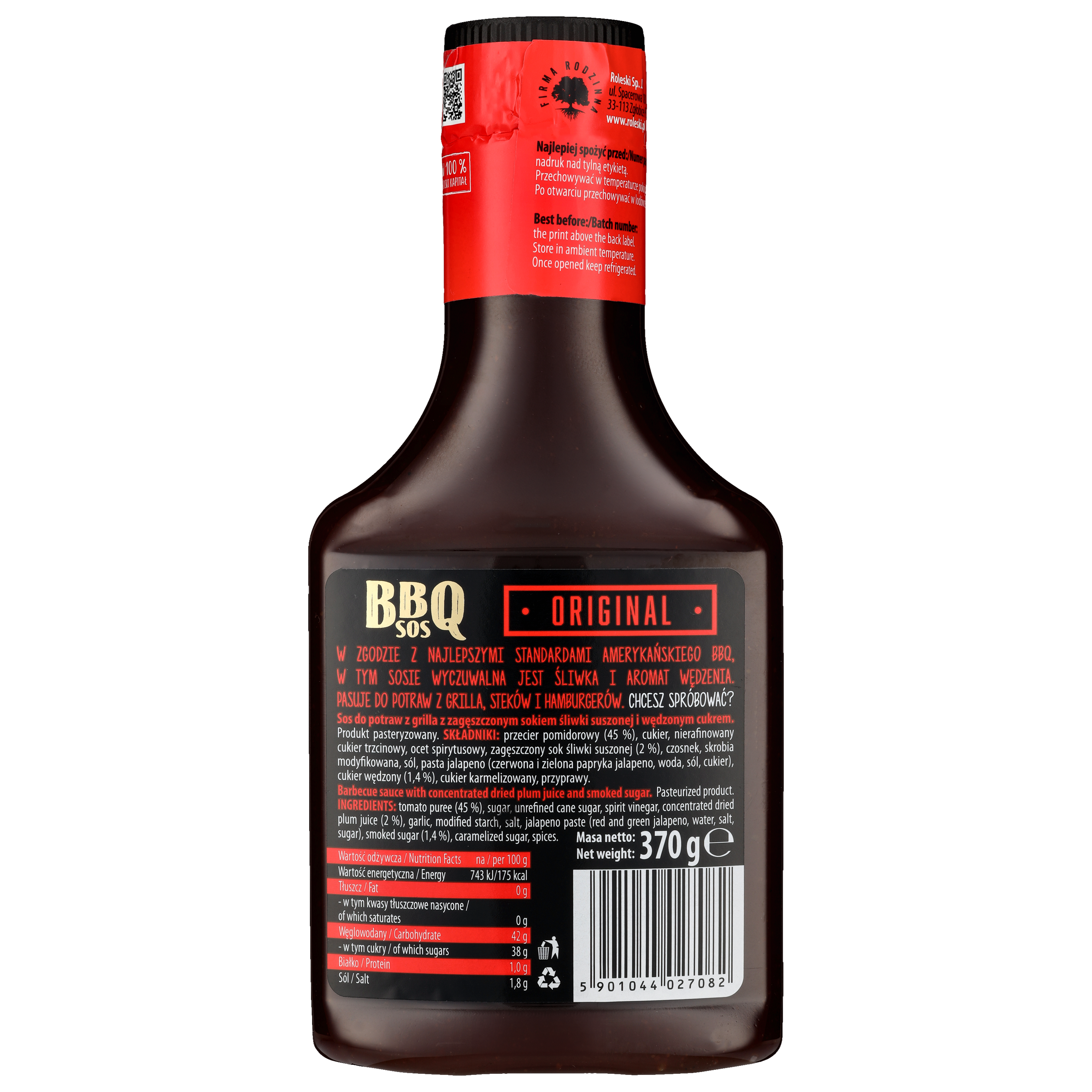 | Składniki | Przecier pomidorowy (45%), cukier, nierafinowany cukier trzcinowy, ocet spirytusowy, zagęszczony sok śliwki suszonej (2%), czosnek, skrobia modyfikowana, sól, pasta jalapeno ( czerwona i zielona papryka jalapeno, woda, sól, cukier), cukier wędzony (1,4%), cukier karmelizowany, przyprawy |